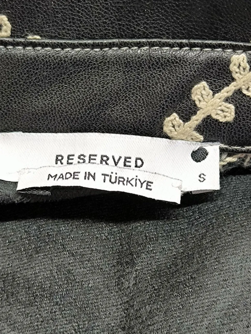 - Reserved Kunstlederjacke, schwarz-wollweiß abstraktes Muster