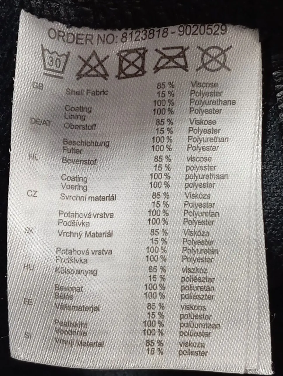 - Außenmaterial: 85% Viskose, 15% Polyester