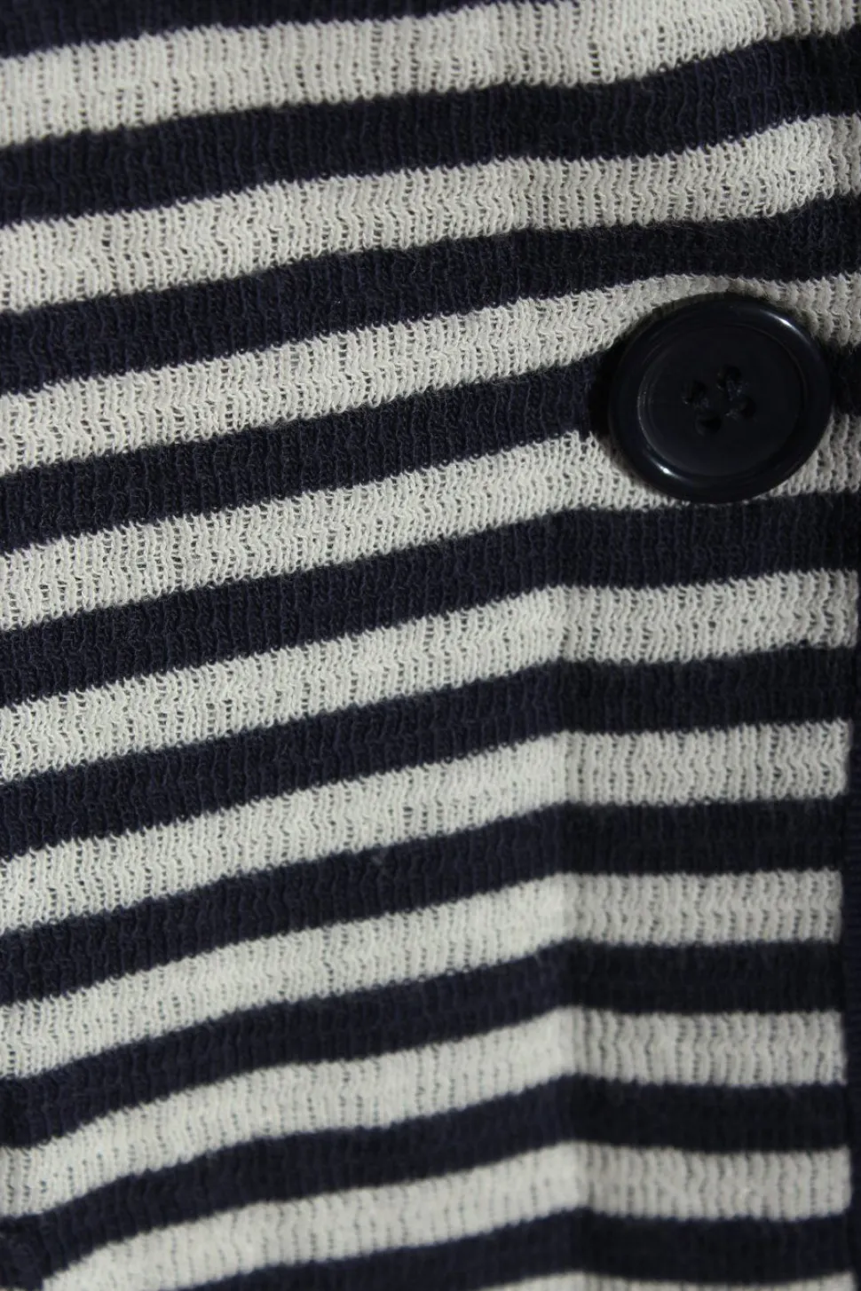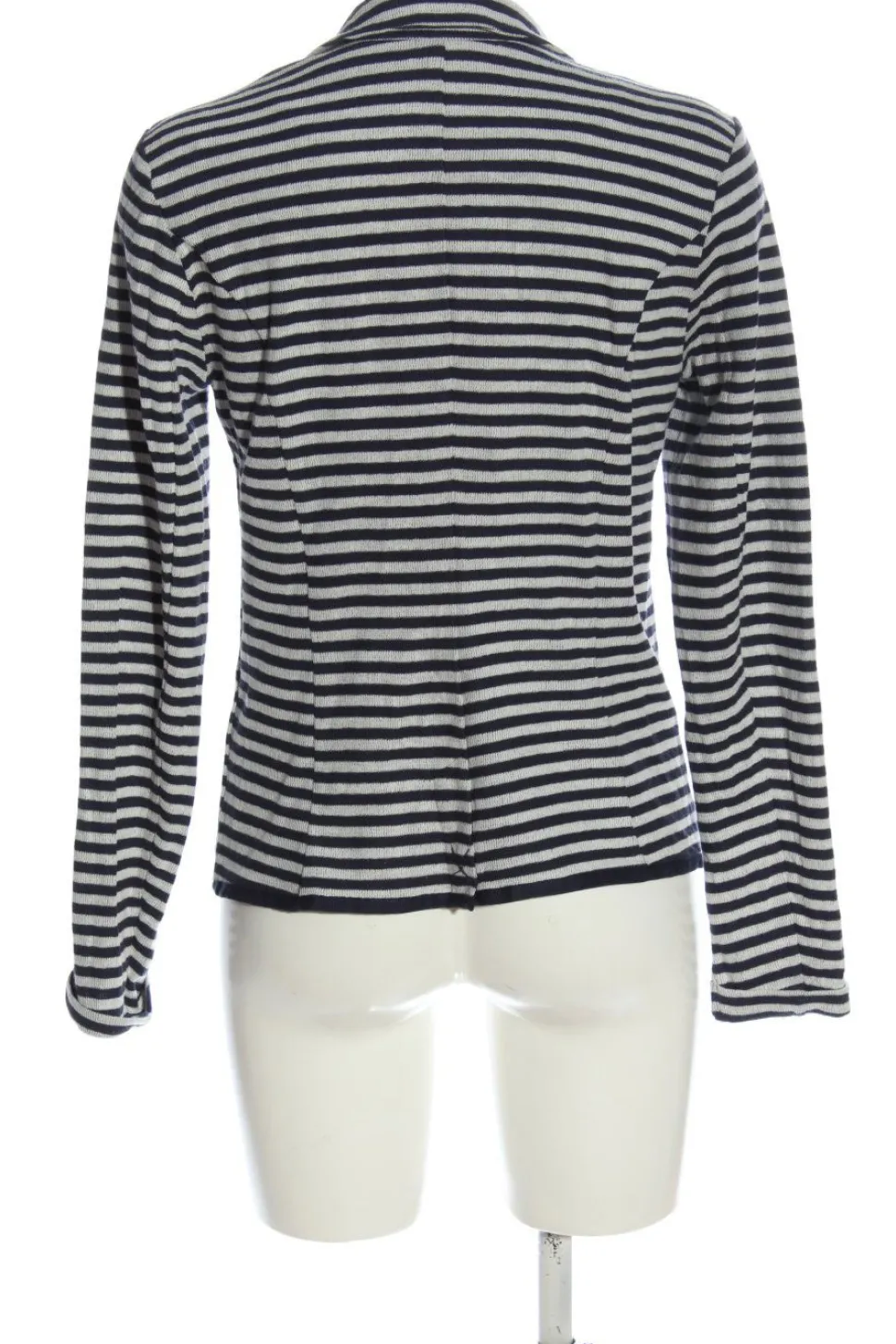 - V-Ausschnitt, Umlegekragen, Umschlagmanschetten, Knopfverschluss, aufgesetzte Taschen, Allover-Druck, Streifenmuster, Casual-Look, Elegant, schlichter Stil, Street-Fashion-Look