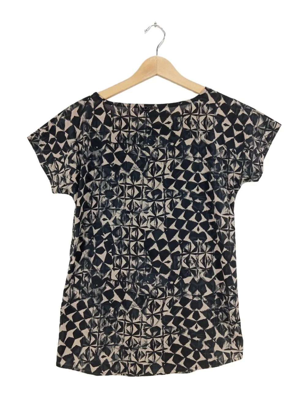 - Pierre Cardin Kurzarm-Bluse, schwarz-wollweiß Allover-Druck