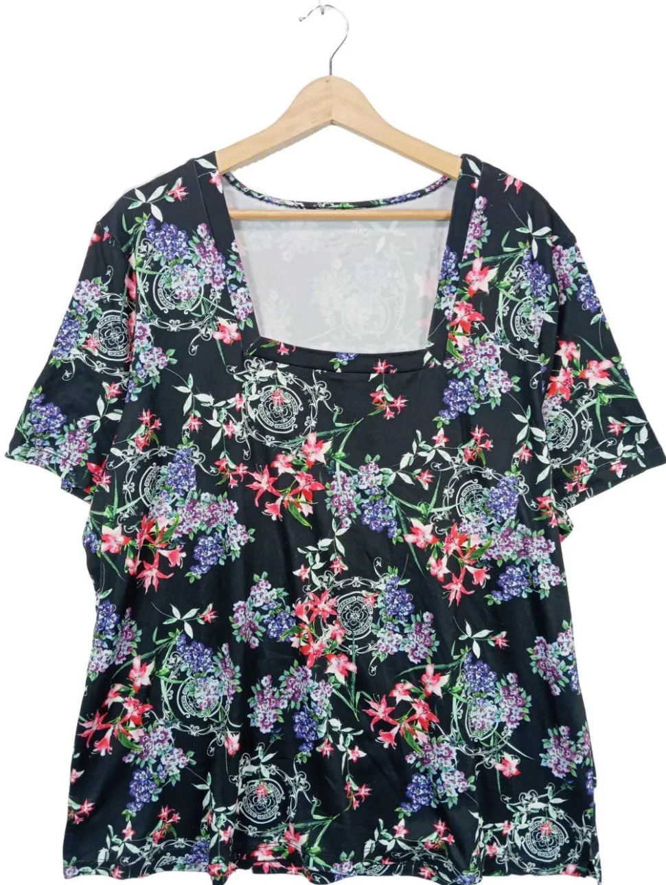 - Kareeausschnitt, Bund am Ärmelsaum, Allover-Druck, Blumenmuster, Casual-Look