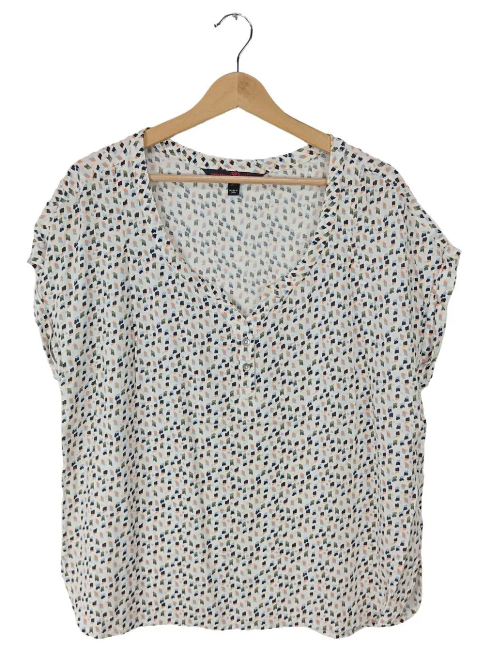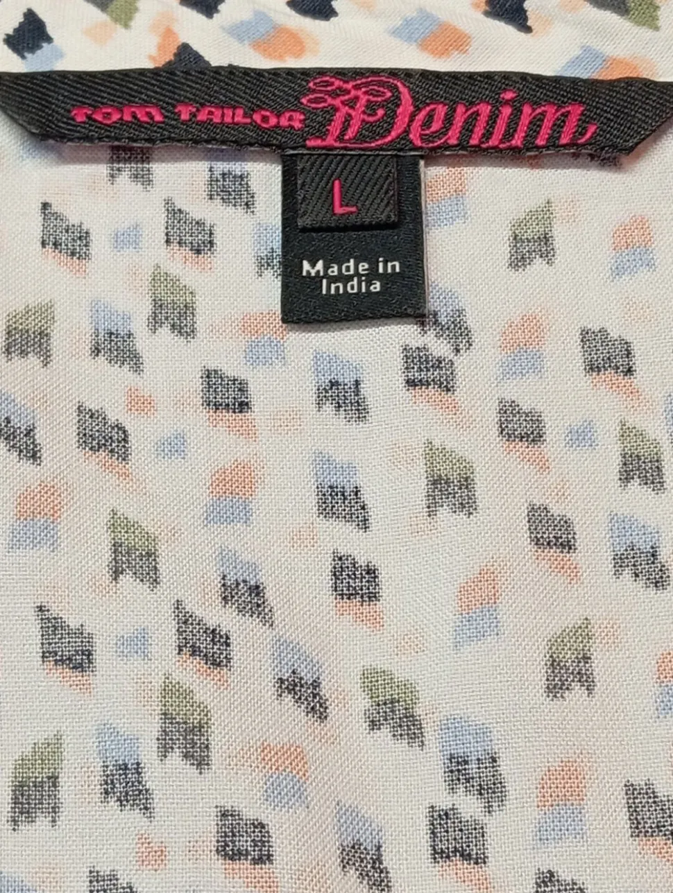 - Tom Tailor Denim Kurzarm-Bluse, grafisches Muster