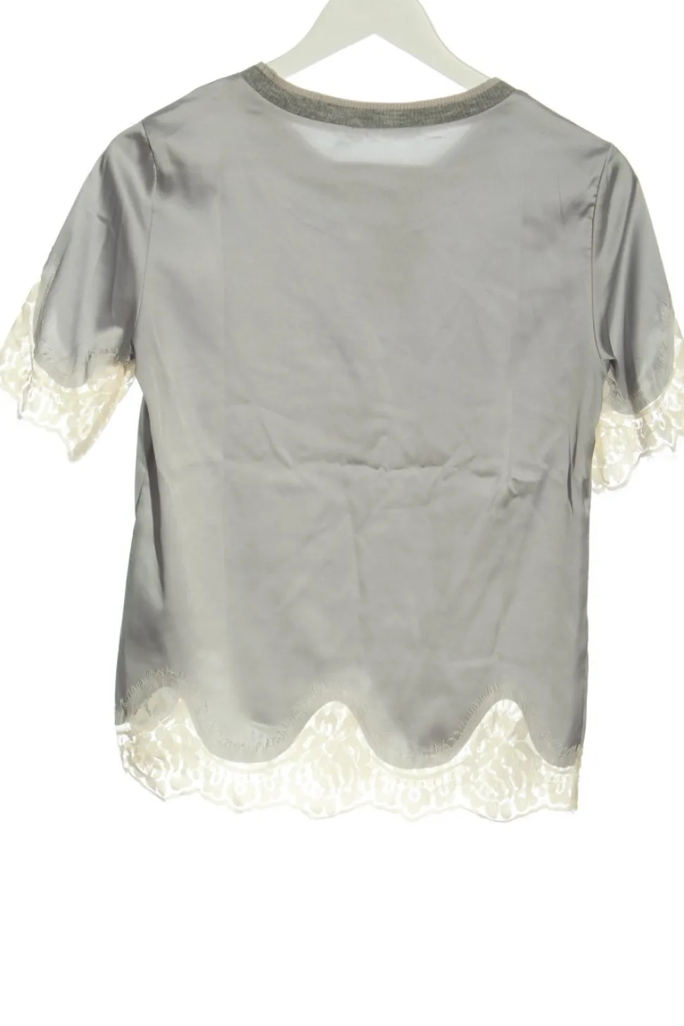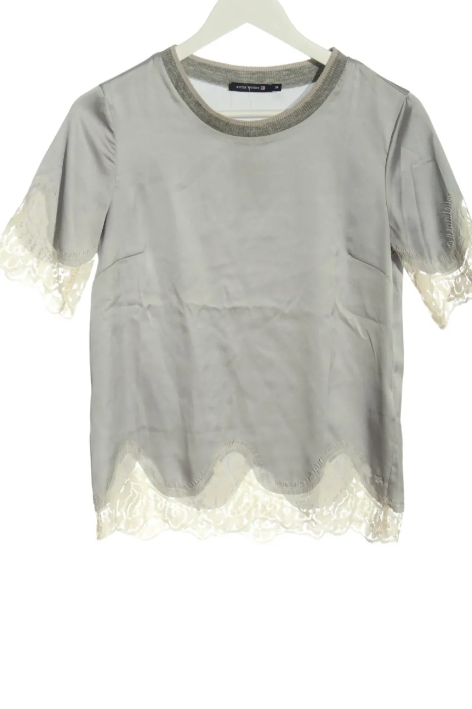 - Rundhalsausschnitt, offene Kanten am Ärmelsaum, Casual-Look, Glanz-Optik, schlichter Stil