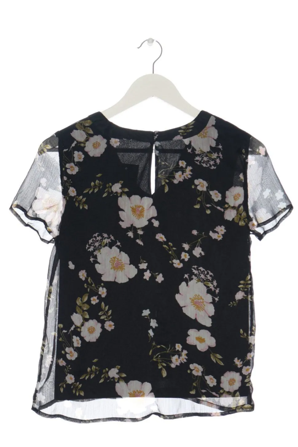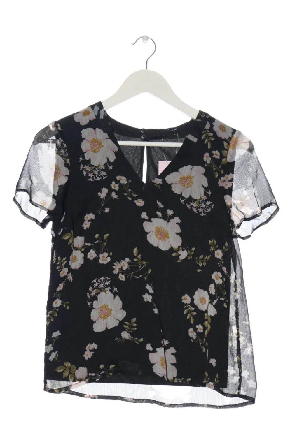 - V-Ausschnitt, Bund am Ärmelsaum, Knopfverschluss hinten, Allover-Druck, Blumenmuster, Elegant, Party-Look, Transparenz-Optik