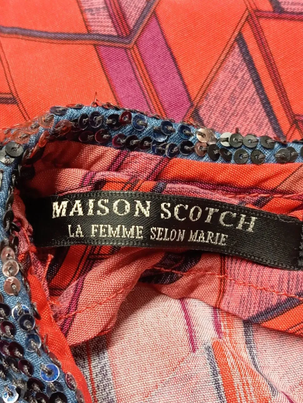 - Maison Scotch Kurzarm-Bluse, rot-blau Allover-Druck