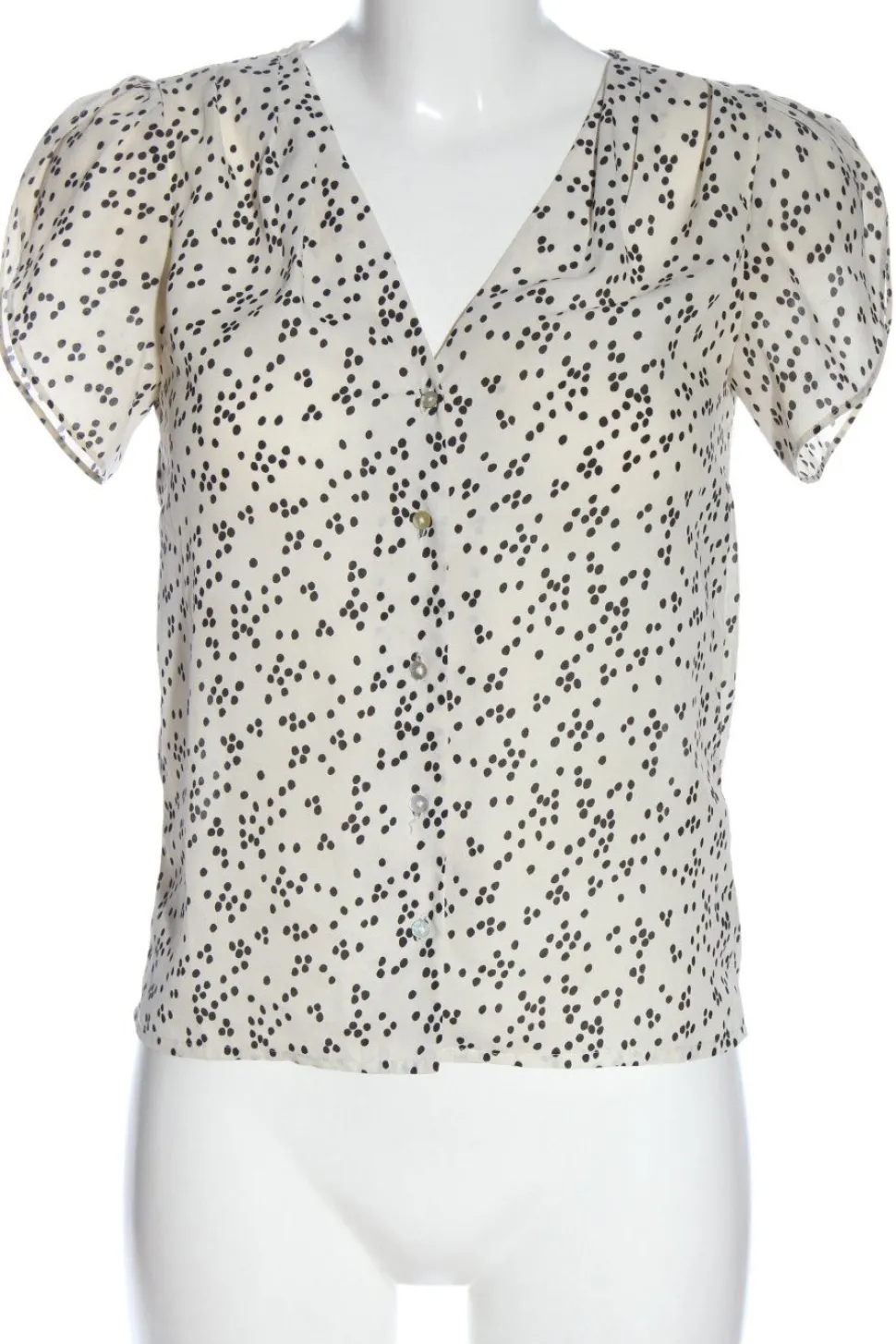 - H&M Kurzarmhemd, wollweiß-schwarz Punktemuster