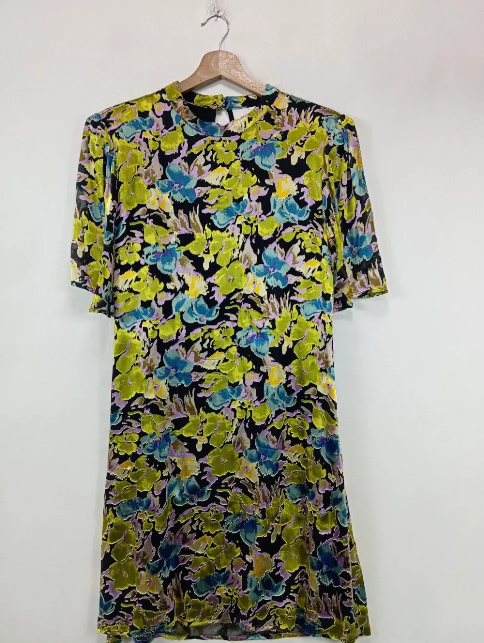 - Gestuz Kurzarmkleid, blassgelb Allover-Druck