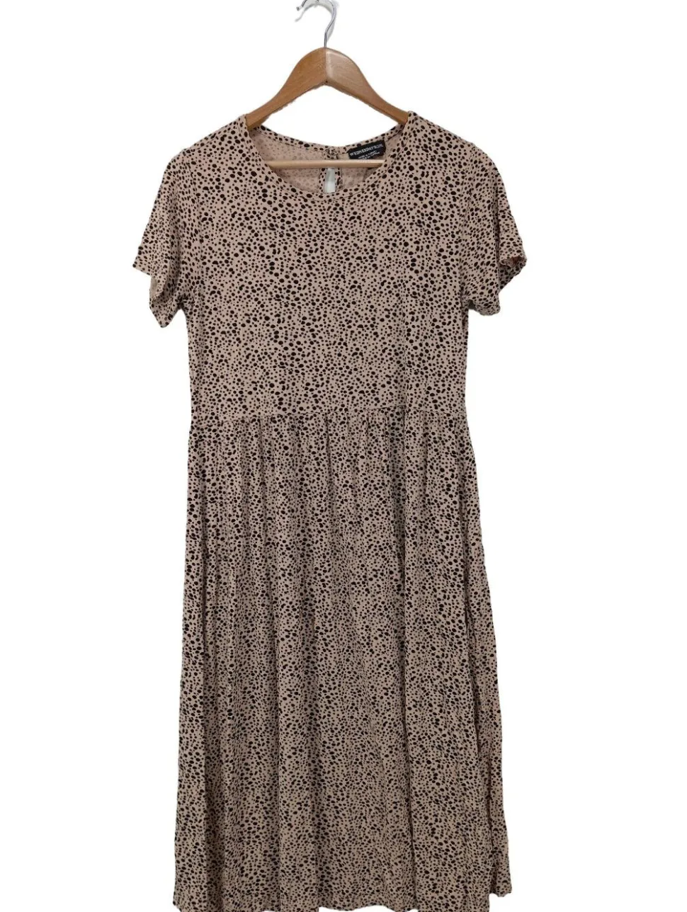 - WEDNESDAY’SGIRL Kurzarmkleid, creme-schwarz Allover-Druck