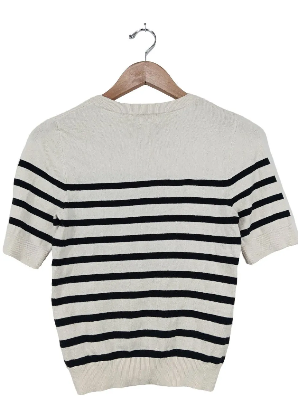 - H&M Kurzarmpullover, weiß-schwarz Streifenmuster