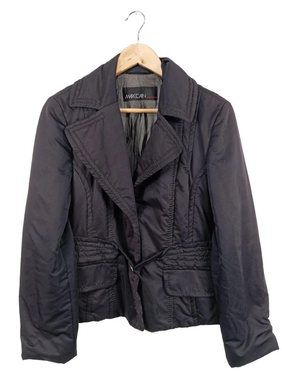 - V-Ausschnitt, Umlegekragen, Bund am Ärmelsaum, Schleifenverschluss, Schnallenverschluss, Pattentaschen, Casual-Look, schlichter Stil, Street-Fashion-Look