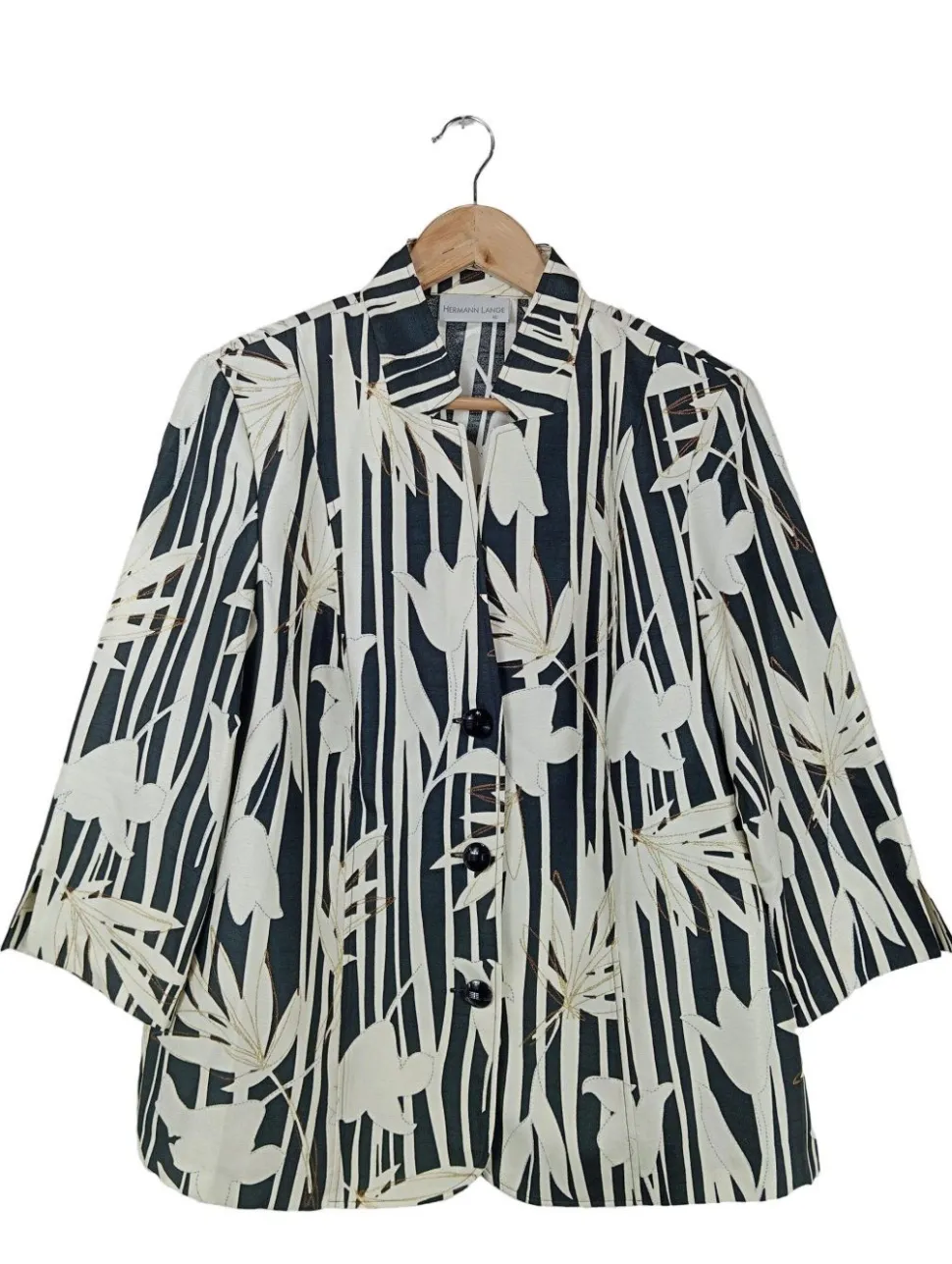 - Hermann Lange Kurzjacke, schwarz-creme Allover-Druck