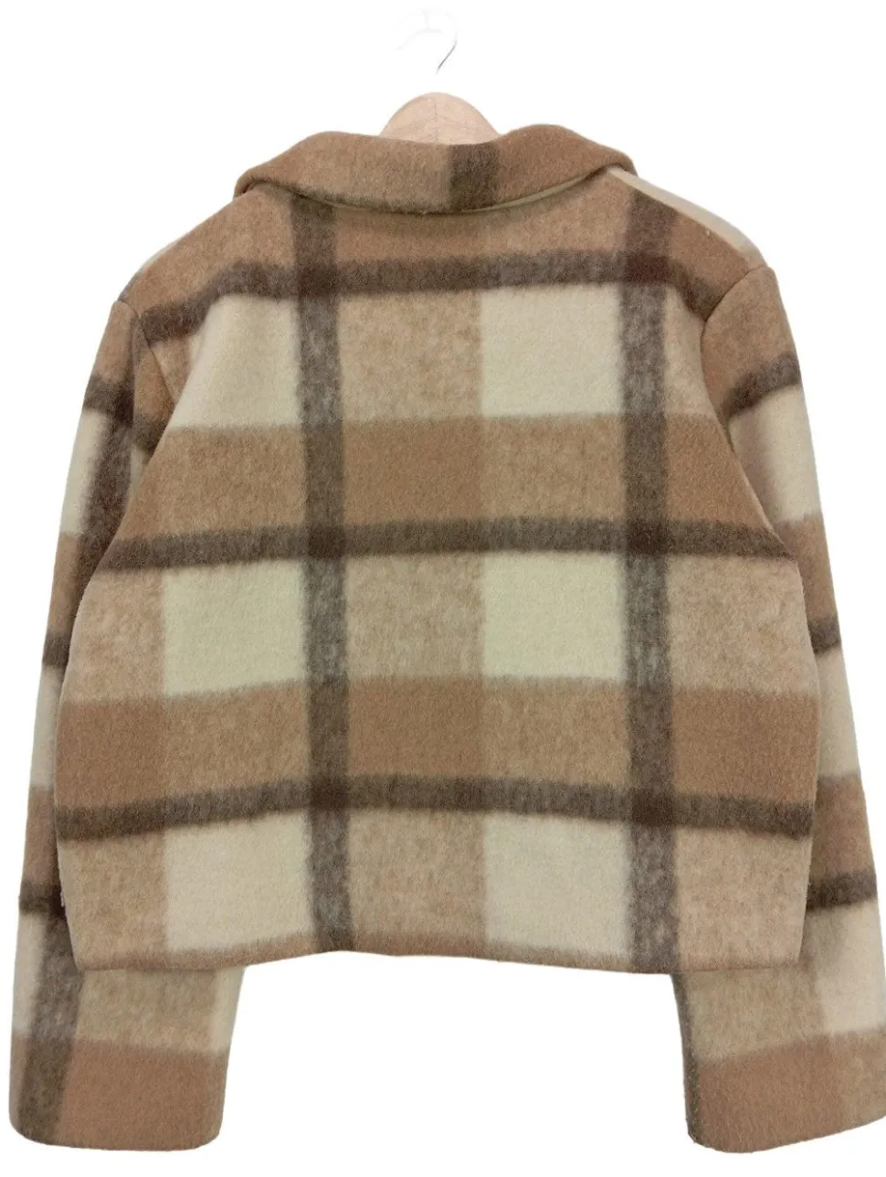 - tiefer V-Ausschnitt, Umlegekragen, Bund am Ärmelsaum, Knopfverschluss, Karomuster, Casual-Look, Street-Fashion-Look