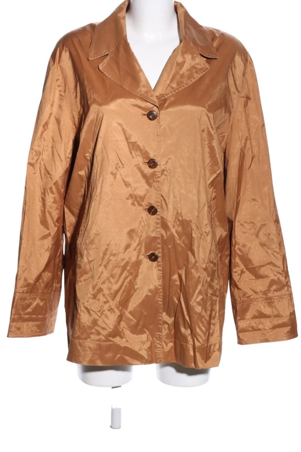 - V-Ausschnitt, Umlegekragen, Bund am Ärmelsaum, Knopfverschluss, Eingriffstaschen, Leistentaschen, Casual-Look, extravaganter Stil, Glanz-Optik, Street-Fashion-Look