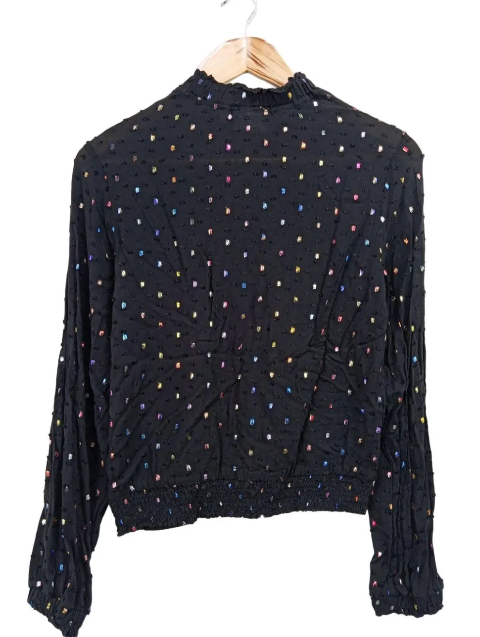 - Stehkragen, Elastikbündchen am Ärmelsaum, Punktemuster, Casual-Look, klassischer Stil, Vintage-Look