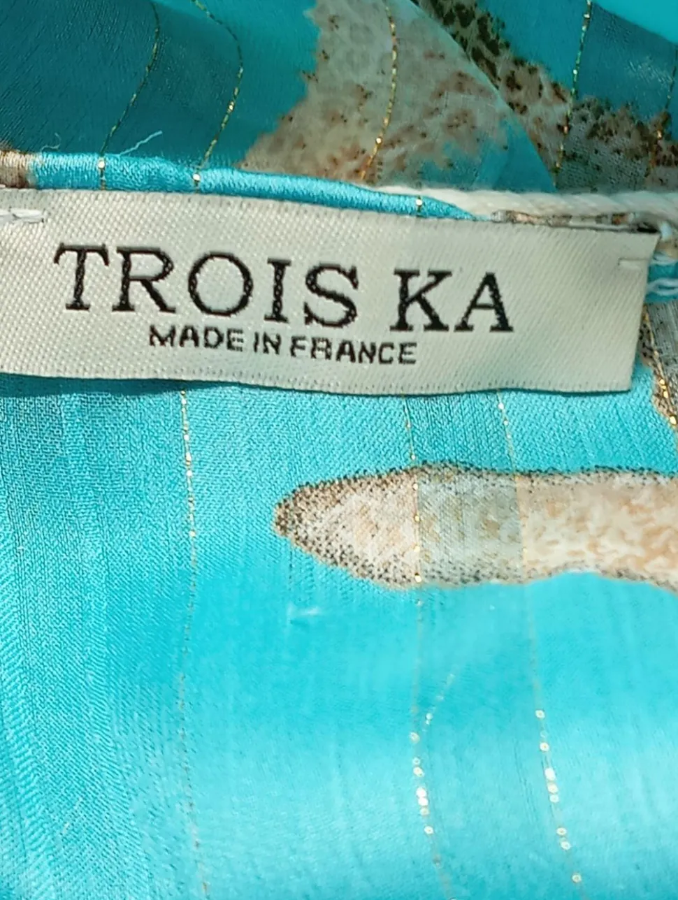 - TROISKA Langarm-Bluse, blau-wollweiß Allover-Druck