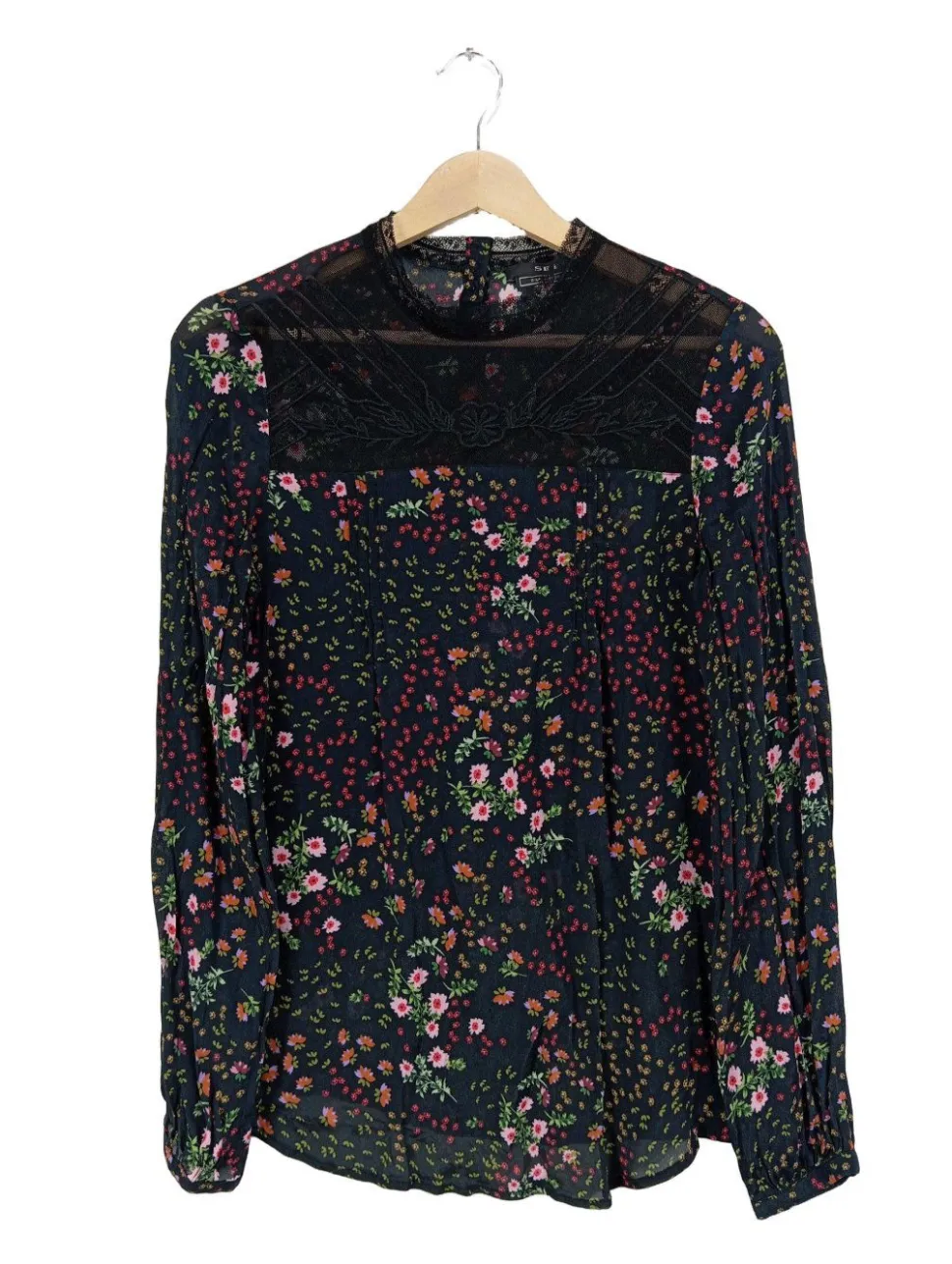 - Rundhalsausschnitt, angeschnittener Kragen, Bund am Ärmelsaum, Allover-Druck, Blumenmuster, Casual-Look, Street-Fashion-Look