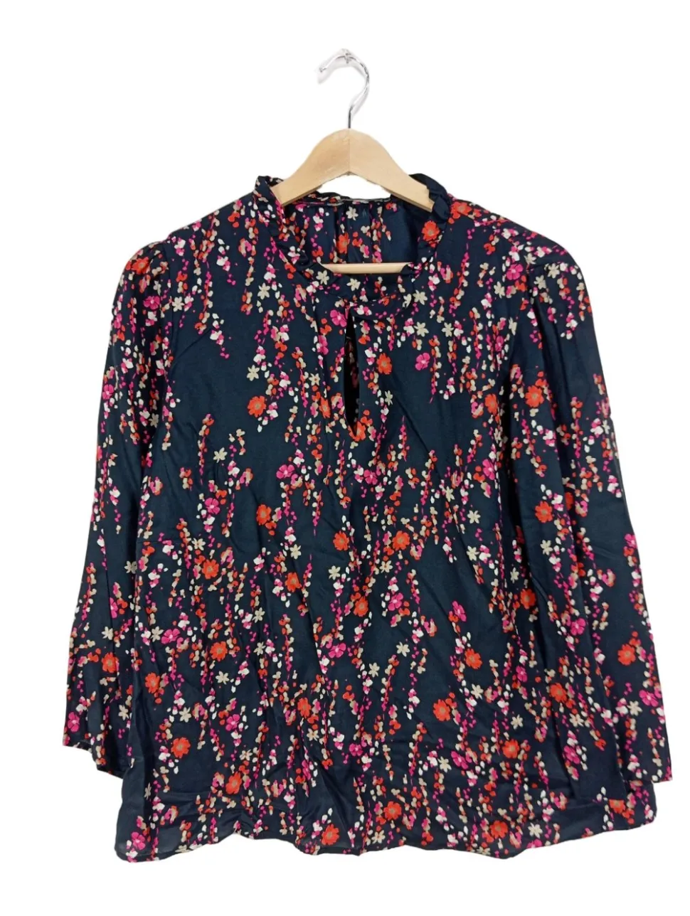 - Schlüssellochausschnitt, Rüschenkragen, Bund am Ärmelsaum, Allover-Druck, Blumenmuster, Party-Look