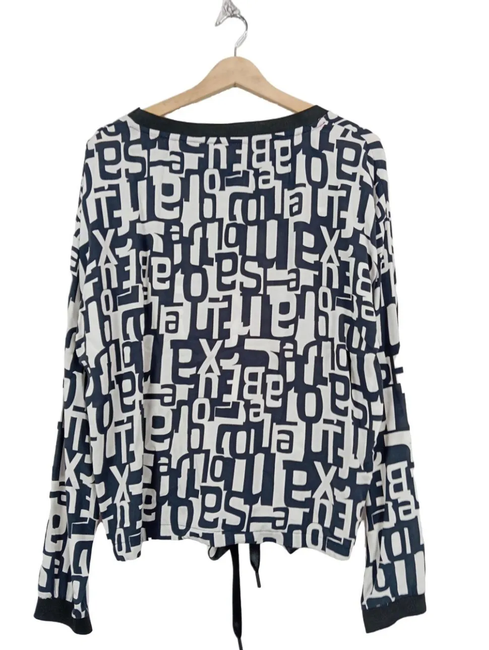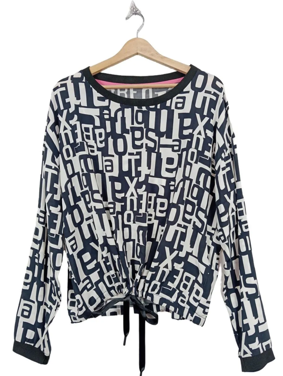 - Rundhalsausschnitt, Armbündchen, Knotenverschluss, Allover-Druck, Schriftzug gedruckt, Casual-Look, Street-Fashion-Look