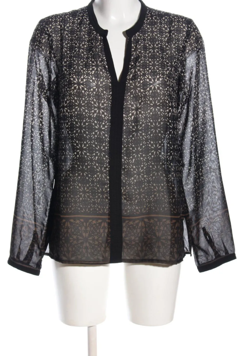 - Bon’a Parte Langarm-Bluse, schwarz-creme Allover-Druck