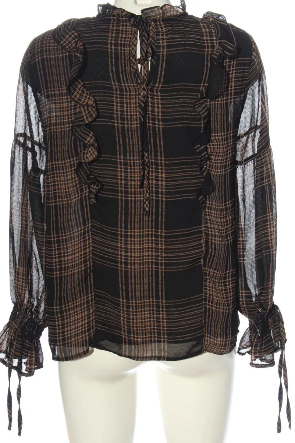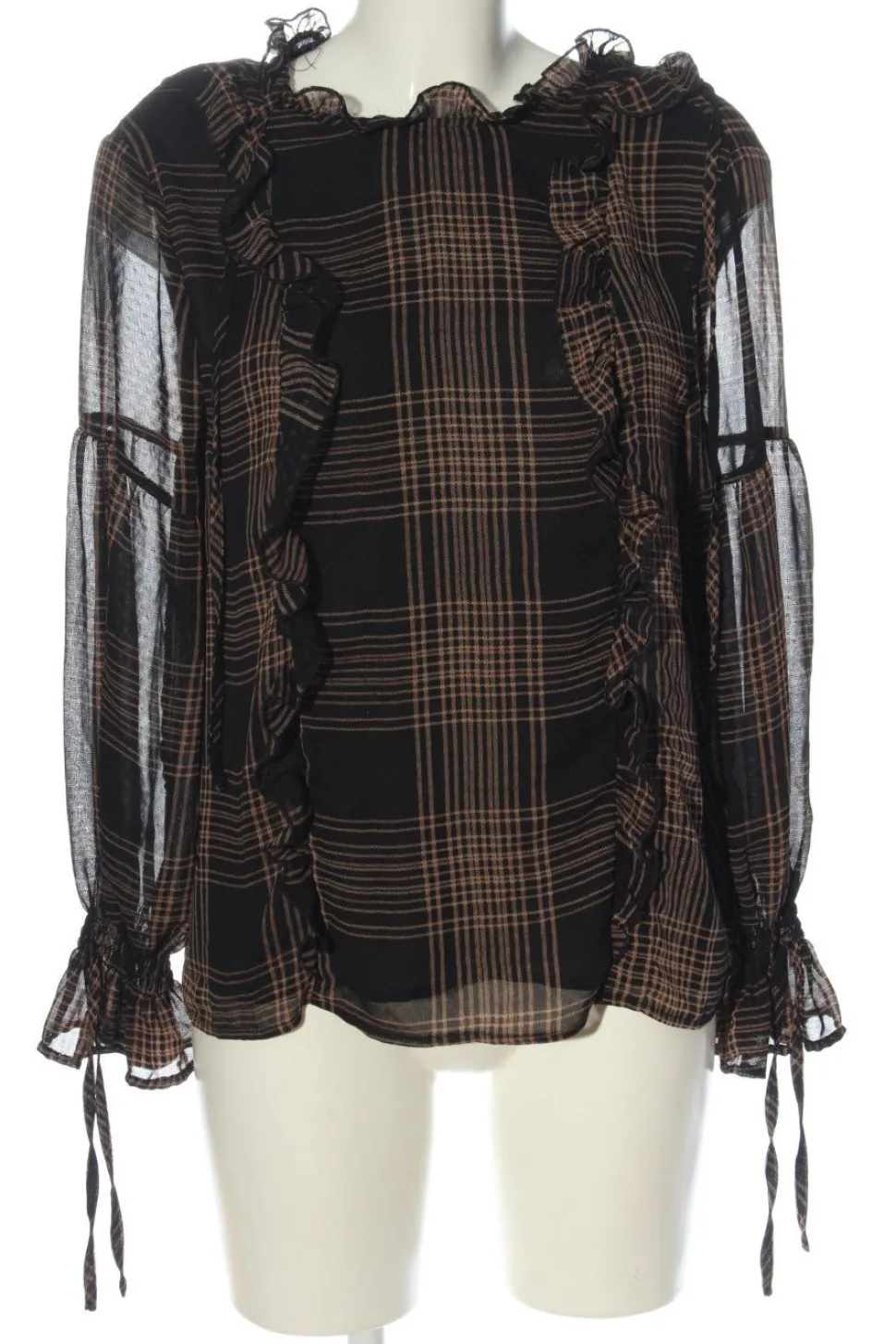 - Reserved Langarm-Bluse, schwarz-nude Karomuster