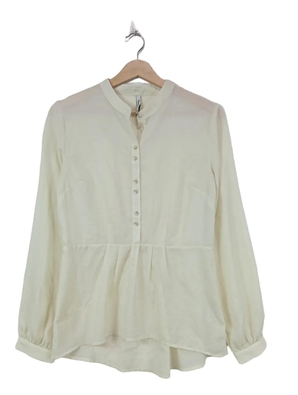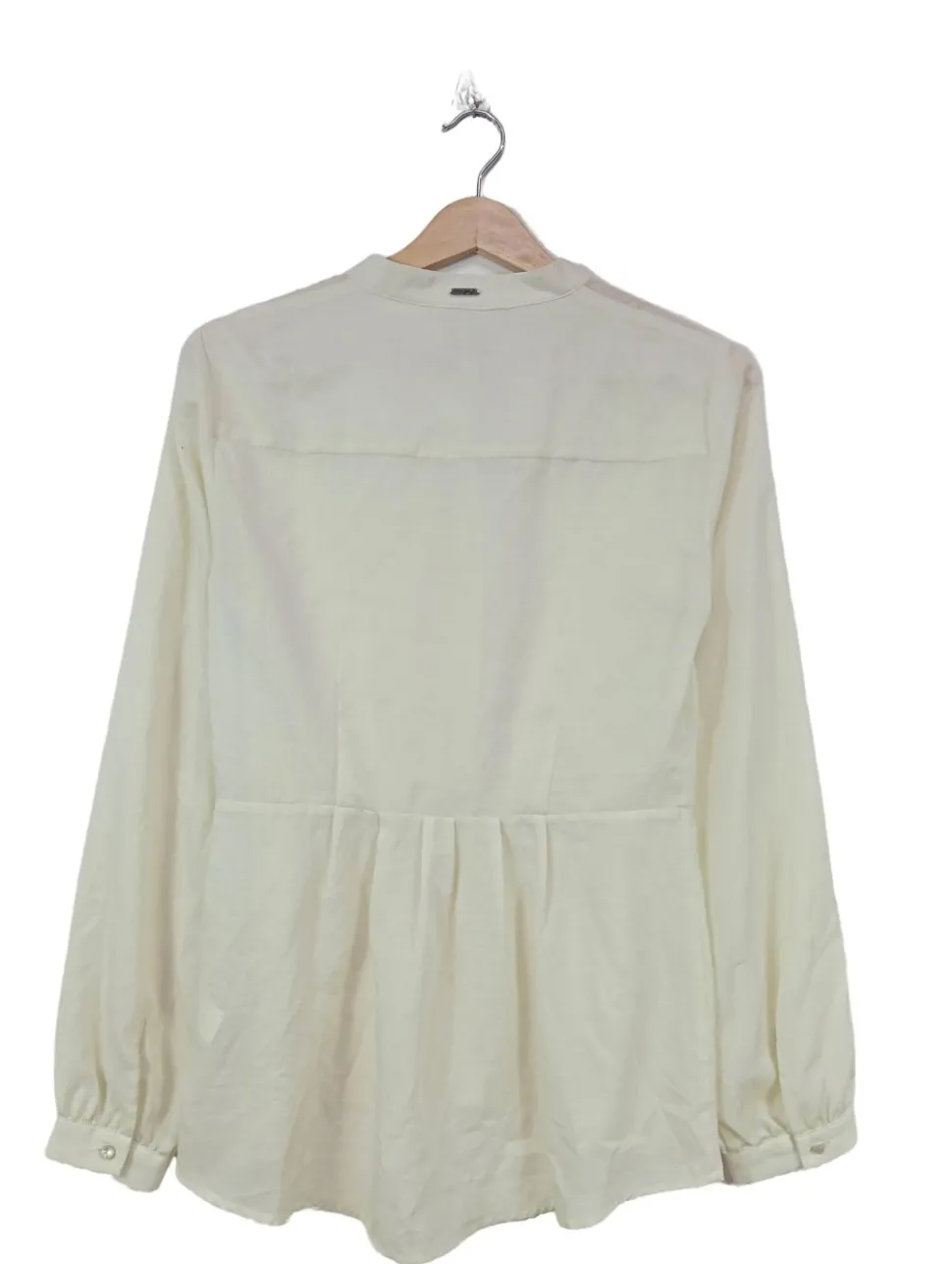 - Rundhalsausschnitt, angeschnittener Kragen, Knopfverschluss am Ärmelsaum, Knopfverschluss, Elegant, klassischer Stil