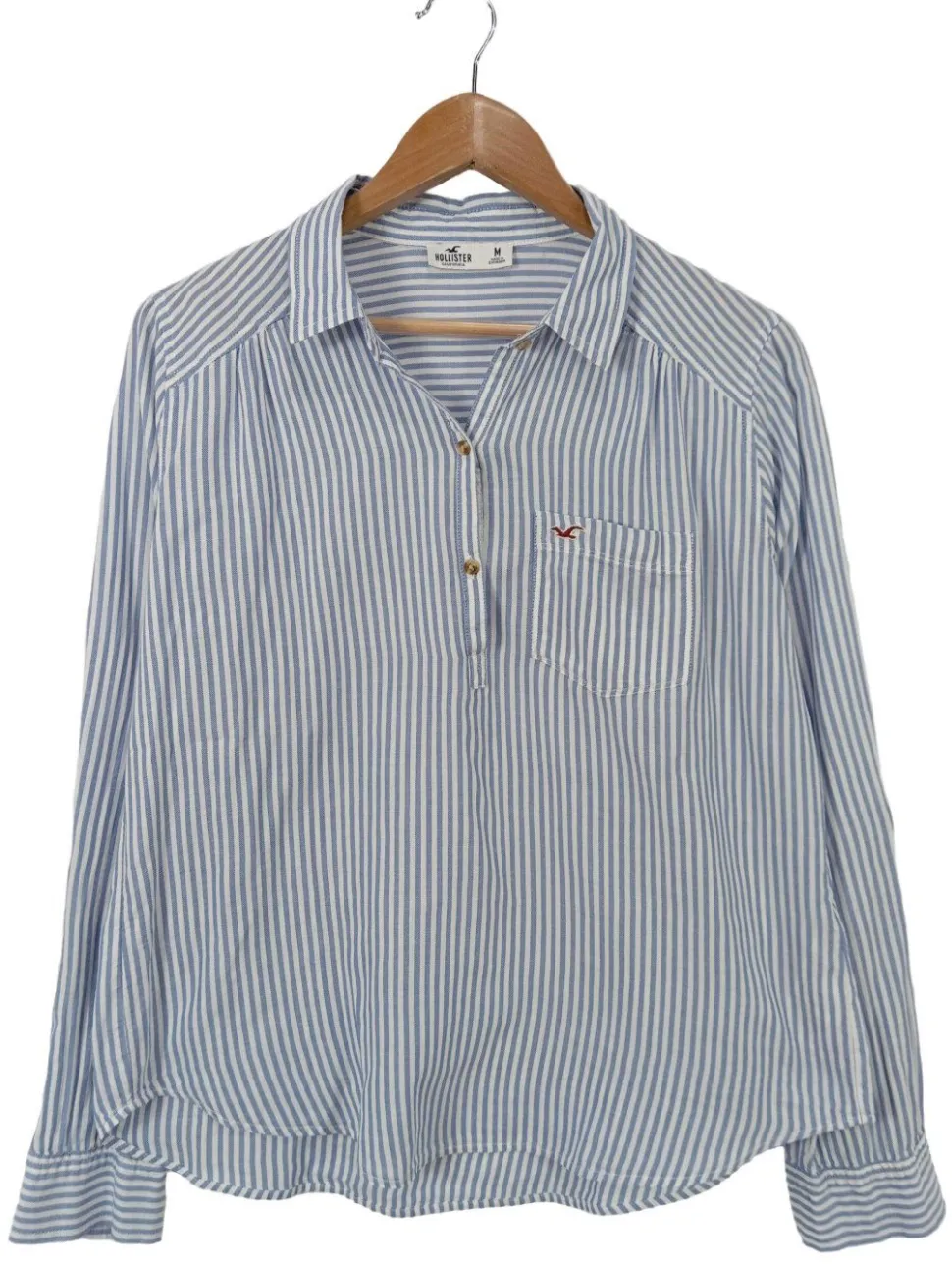 - Holister Langarmhemd, blau-weiß Streifenmuster