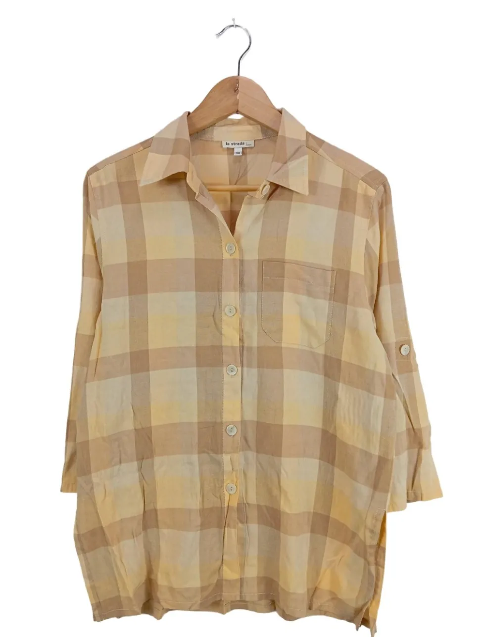 - La Strada Langarmhemd, creme-wollweiß Karomuster