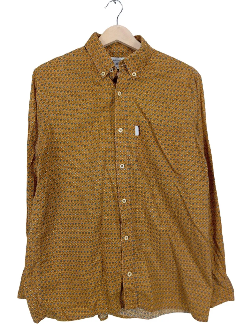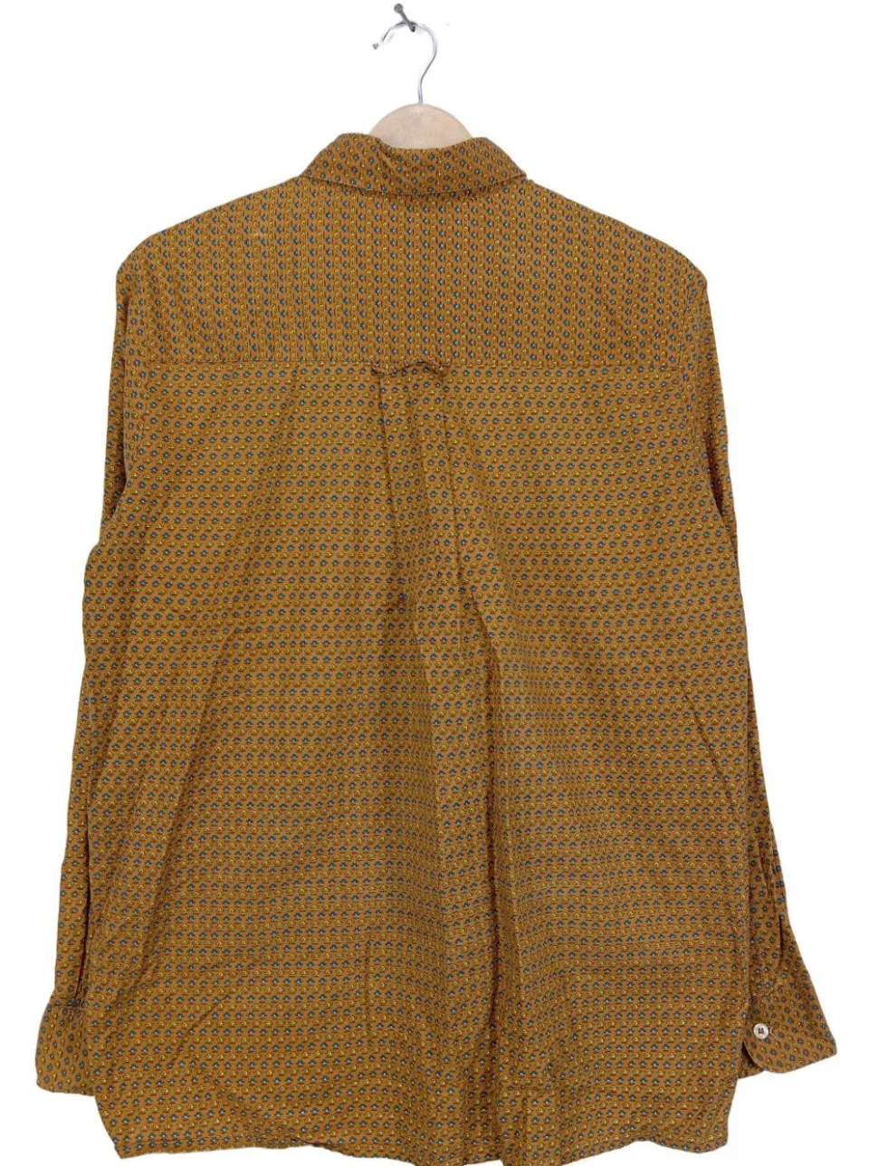 - Rundhalsausschnitt, angeschnittener Kragen, Knopfverschluss am Ärmelsaum, Knopfverschluss, abstraktes Muster, Allover-Druck, Elegant