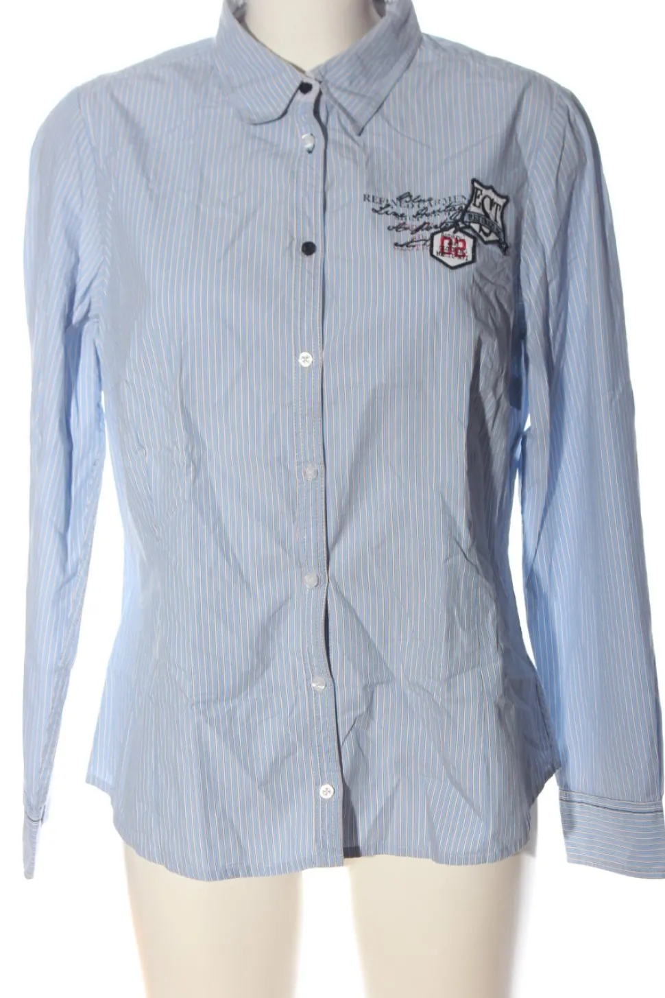 - Anne L. Langarmhemd, blau-weiß Schriftzug gestickt