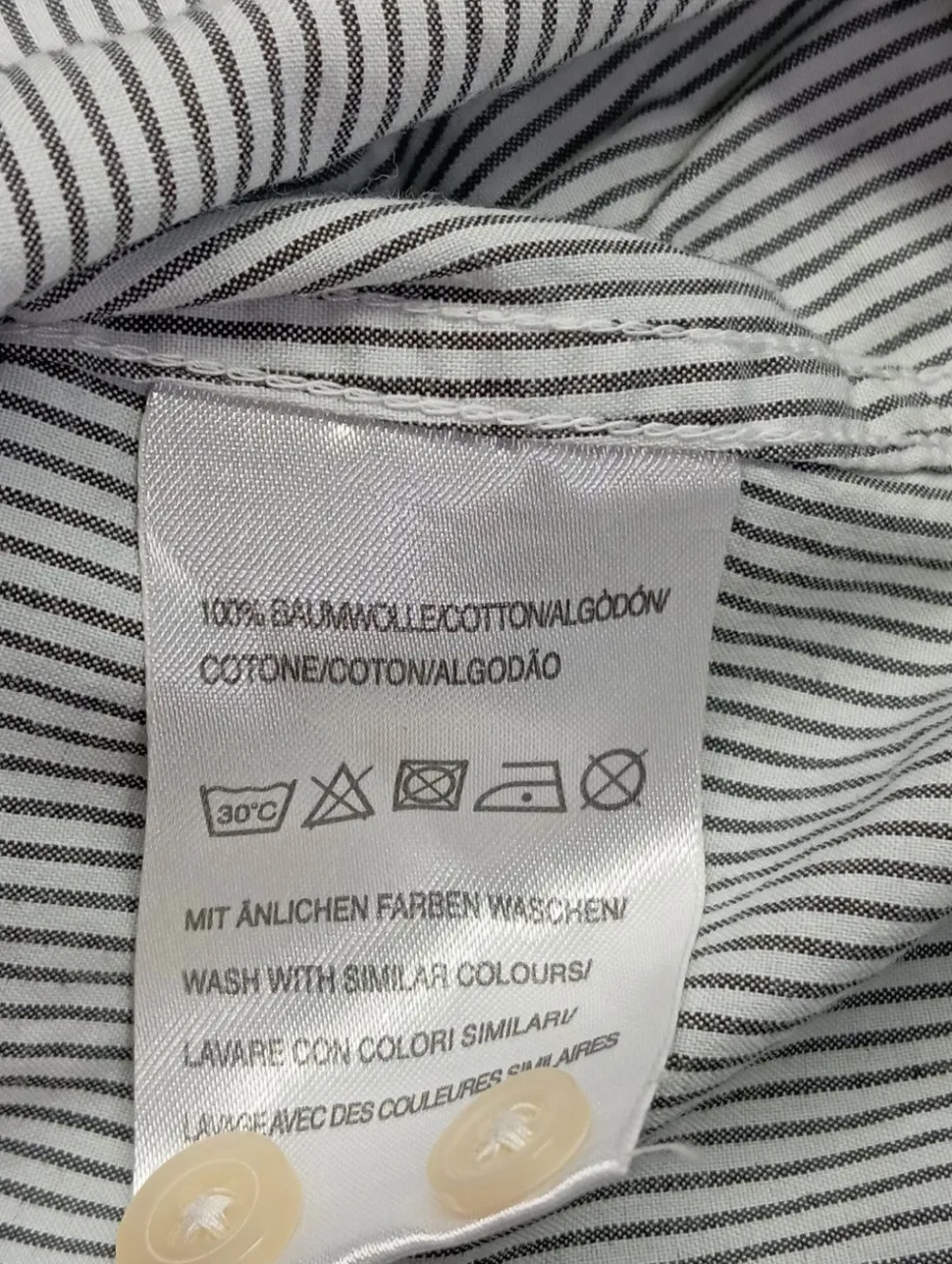 - Rundhalsausschnitt, Hemdkragen, Knopfverschluss am Ärmelsaum, Knopfverschluss, Streifenmuster, Elegant, klassischer Stil