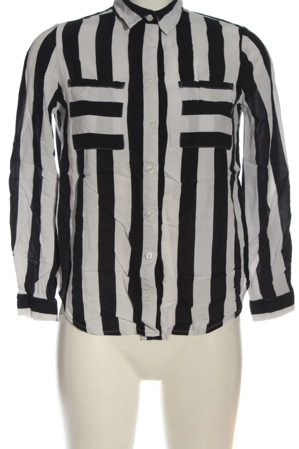 - H&M Langarmhemd, schwarz-hellgrau Streifenmuster