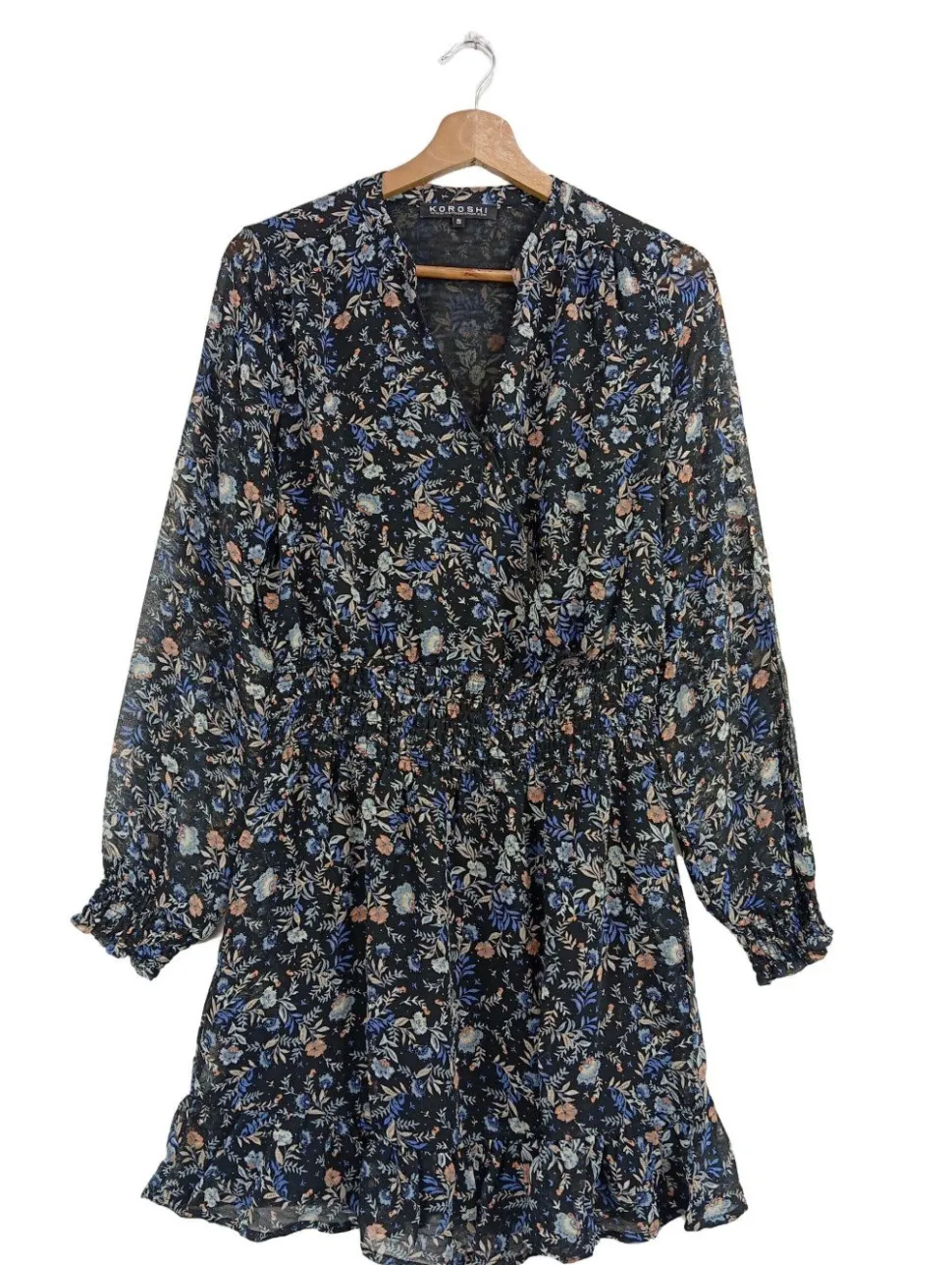 - Rundhalsausschnitt, V-Ausschnitt, Wickelausschnitt, Allover-Druck, Blumenmuster, Casual-Look, schlichter Stil