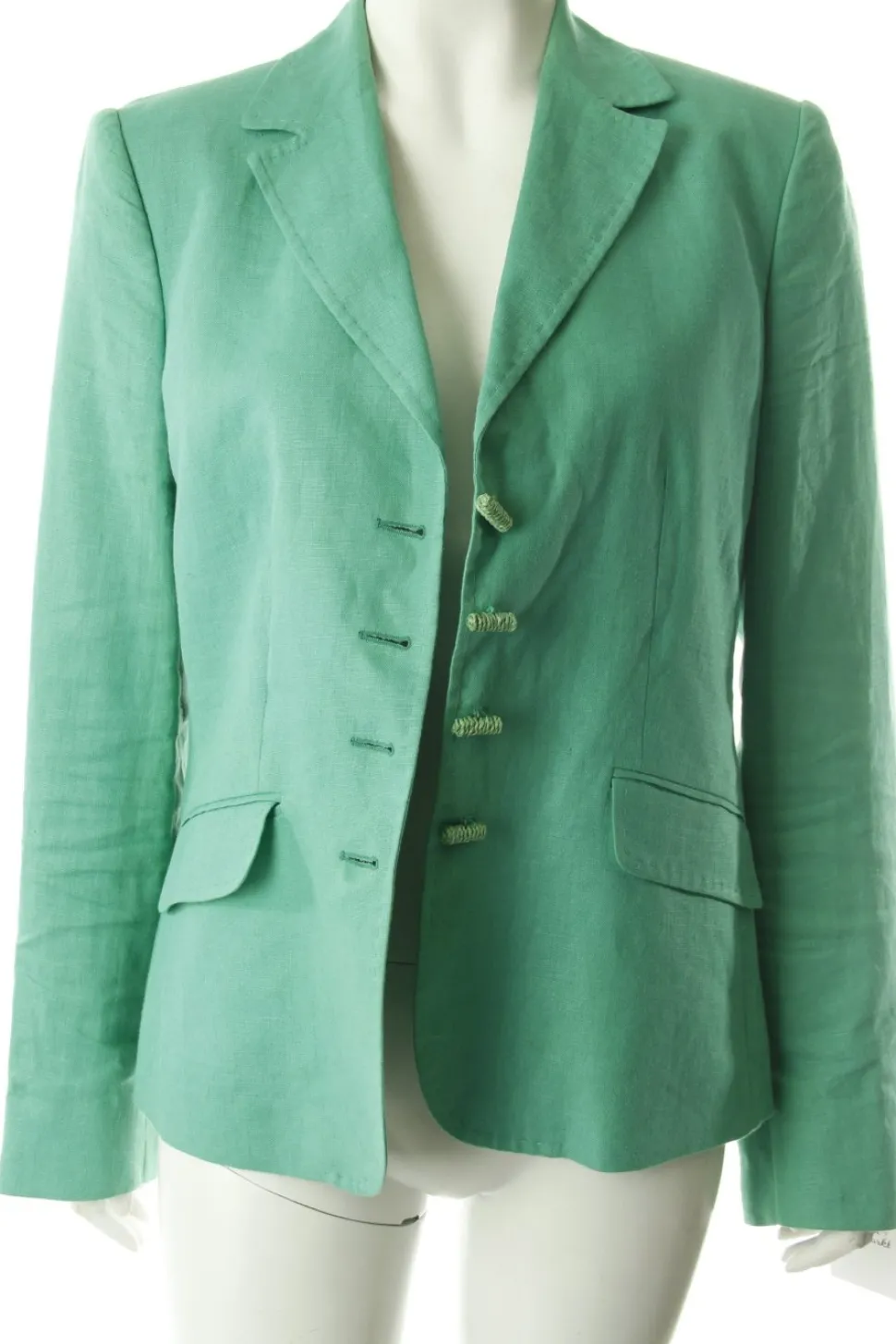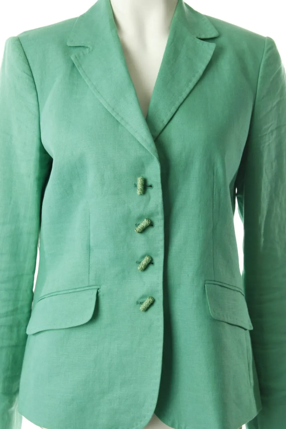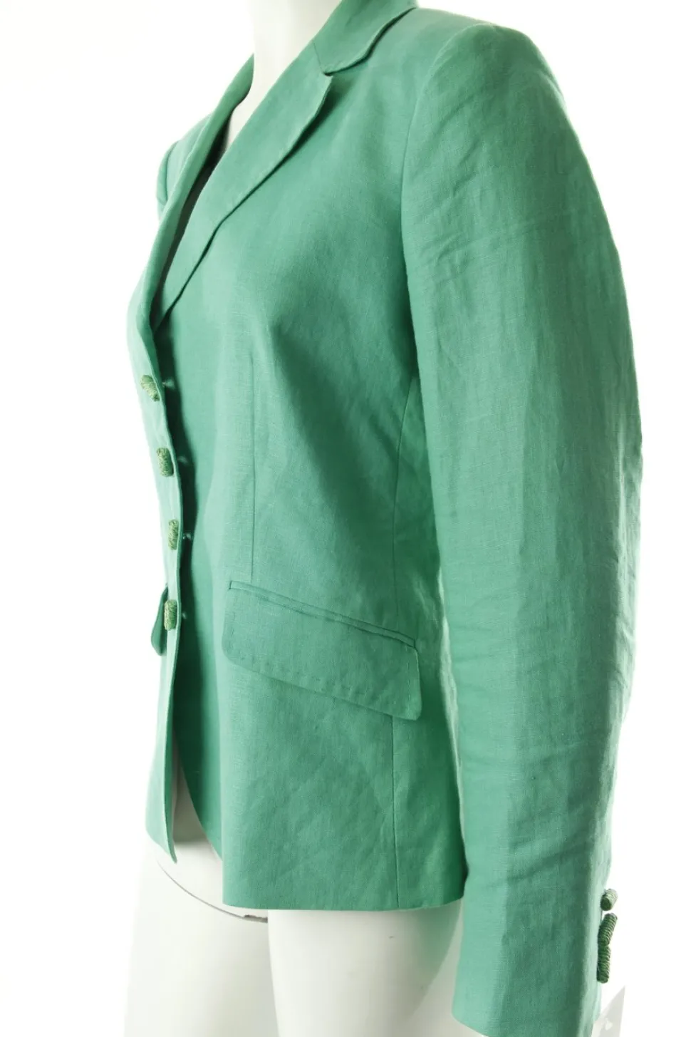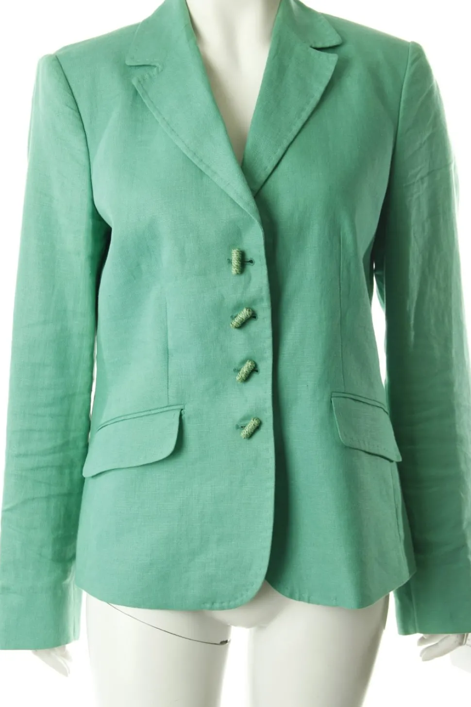 - Grüner Leinenblazer von NVSCO, Bast-Knöpfe, zwei Taschen, gerader Schnitt, sichtbare Zier-Nähte