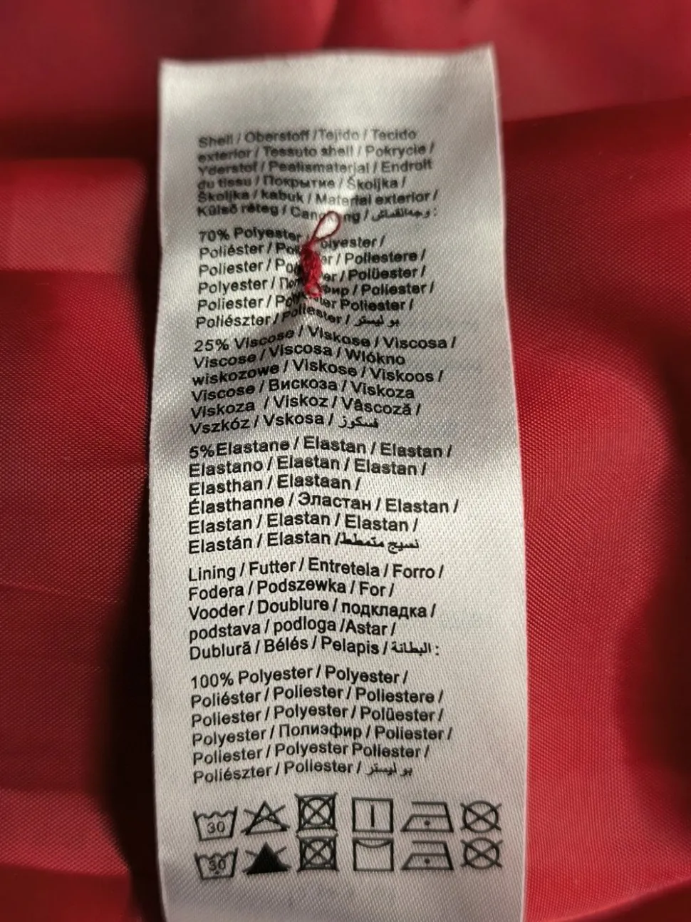 - Außenmaterial: 70% Polyester, 25% Viskose, 5% Elasthan