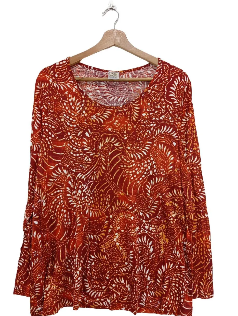 - Rundhalsausschnitt, Bund am Ärmelsaum, Mustermix, Casual-Look, schlichter Stil, Vintage-Look