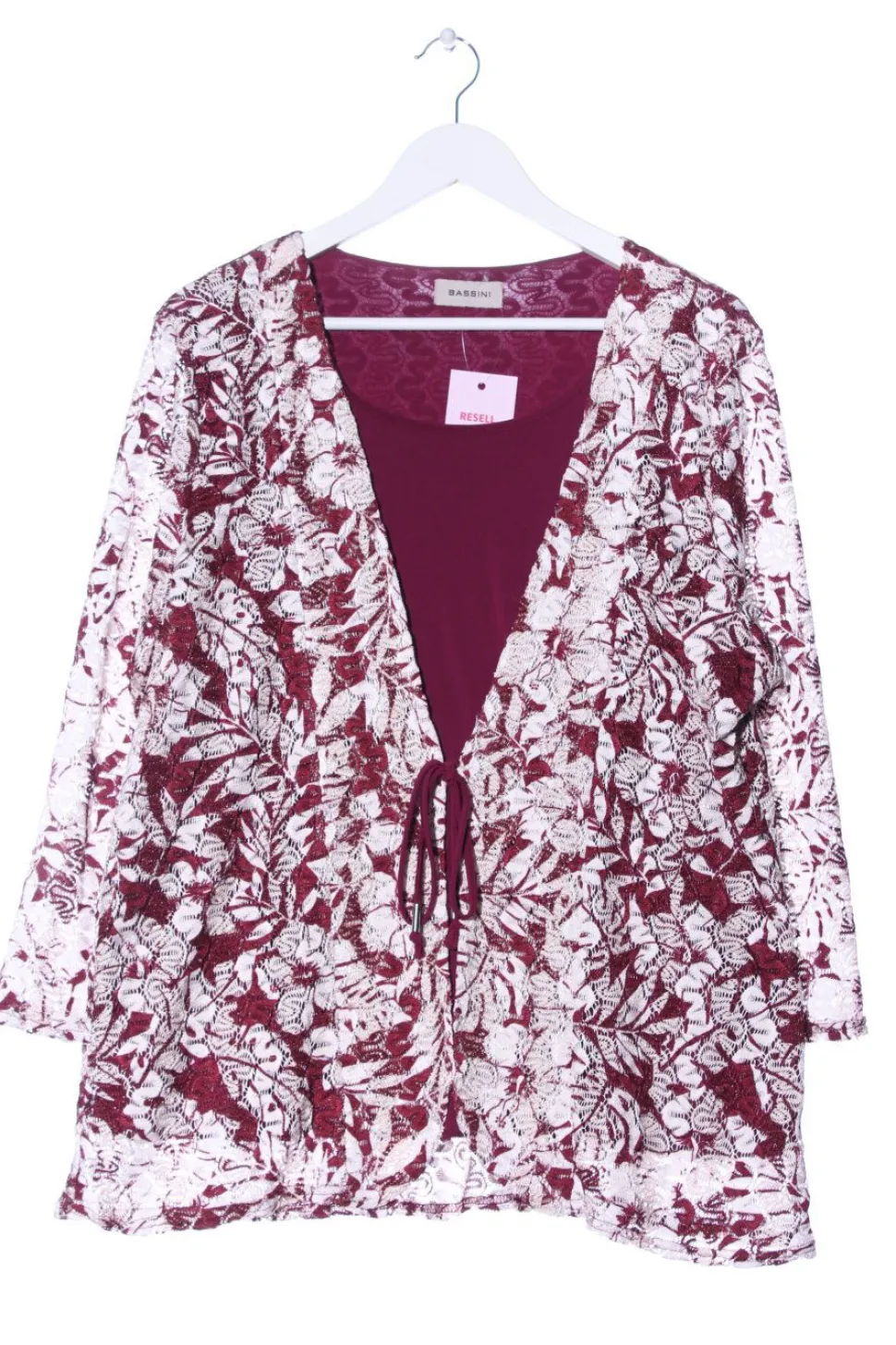 - tiefer V-Ausschnitt, Bund am Ärmelsaum, Knotenverschluss, Allover-Druck, Mustermix, Webmuster, Elegant, Transparenz-Optik