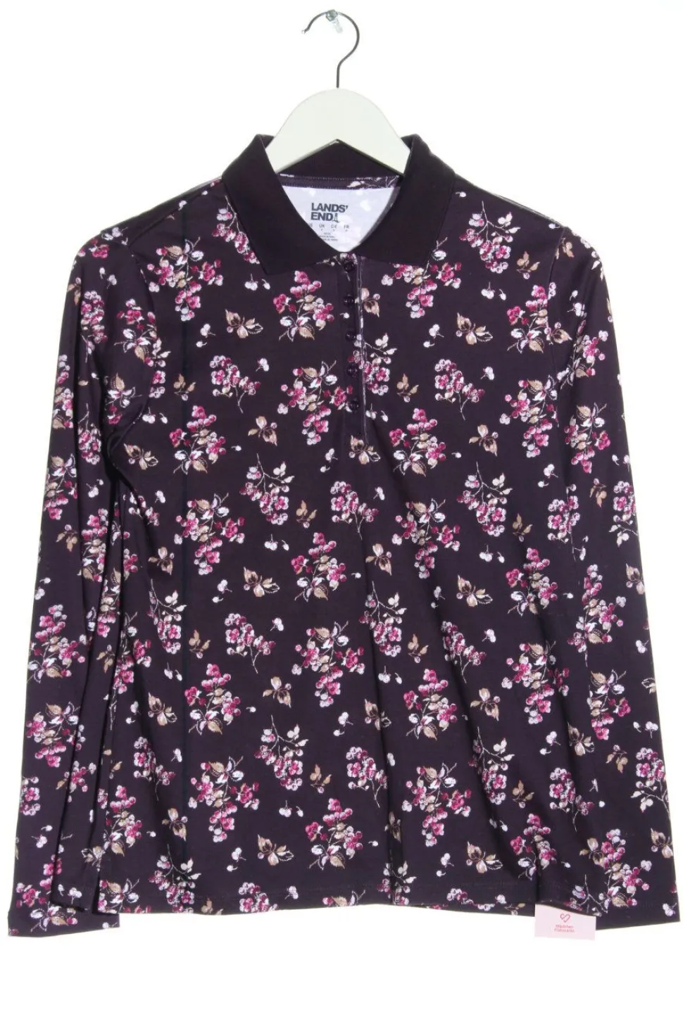 - Polokragen, Bund am Ärmelsaum, Knopfverschluss, Allover-Druck, Blumenmuster, Casual-Look, schlichter Stil, Street-Fashion-Look