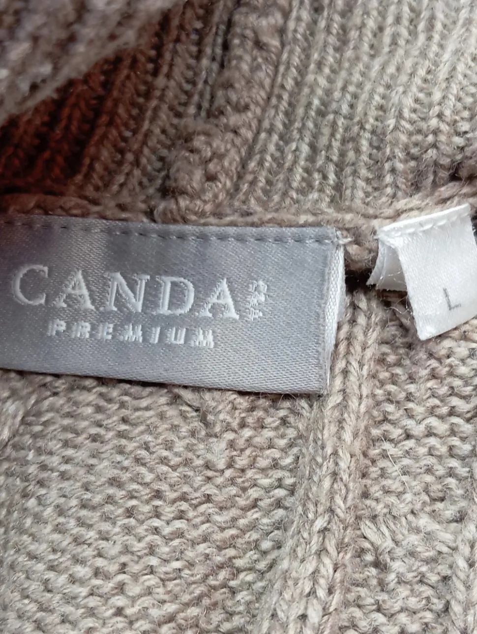 - Canda Longstrickweste, braun Zopfmuster
