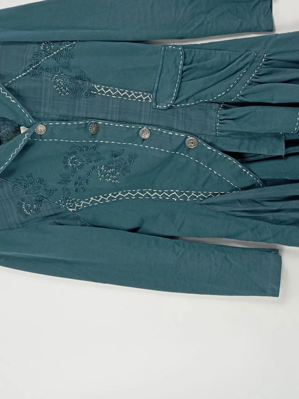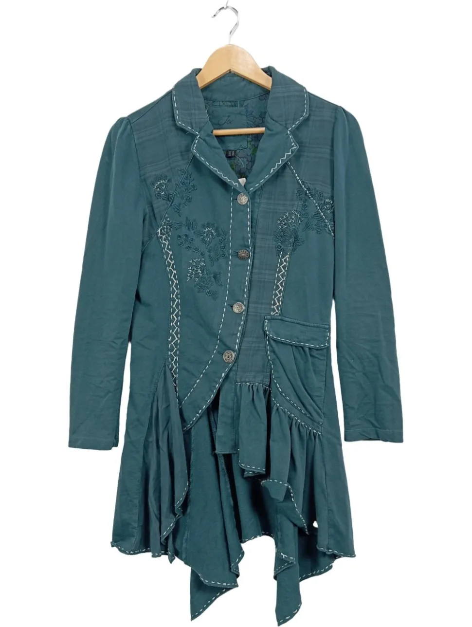 - Akzente: Asymmetrischer Schnitt, Rüschen, Stickerei, Zierknöpfe