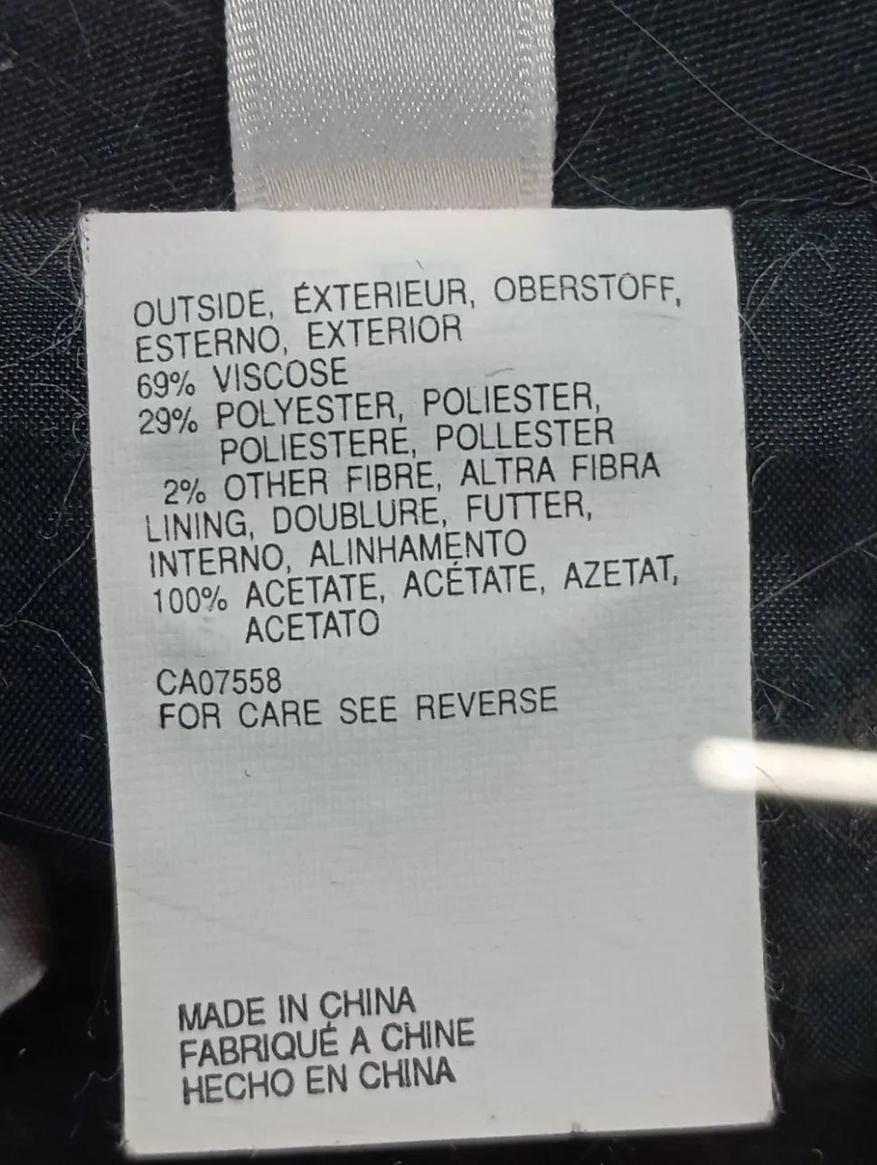 - Außenmaterial: 69% Viskose, 29% Polyester, 2% keine Textilangabe