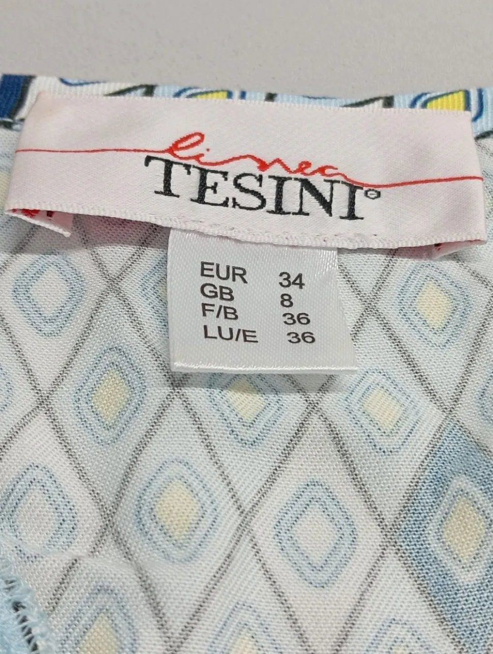 - Linea Tesini Oversized Bluse, blau-blassgelb grafisches Muster