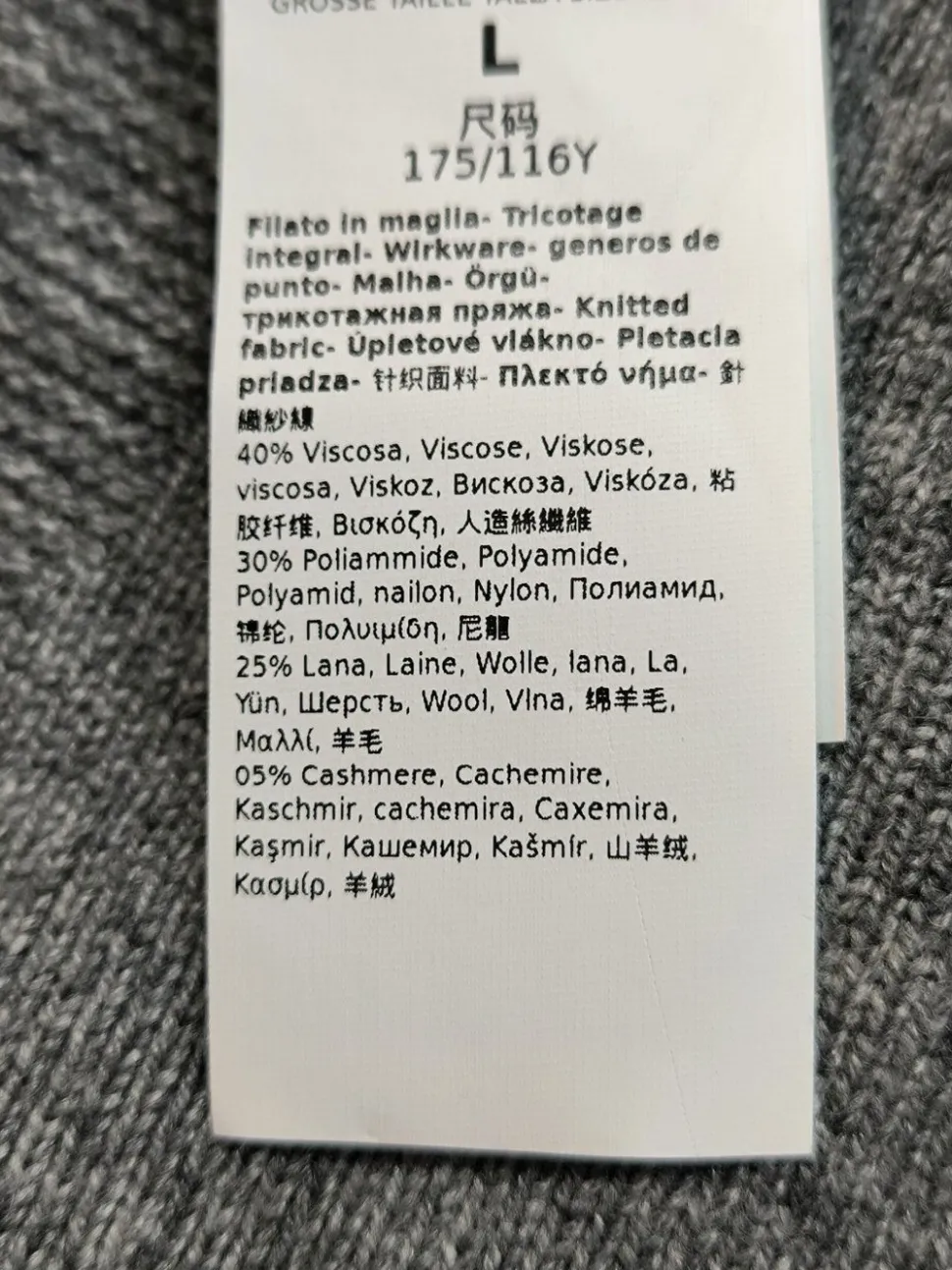 - Außenmaterial: 40% Viskose, 30% Polyamid, 25% Wolle, 5% Kaschmir