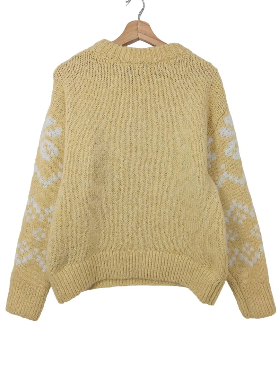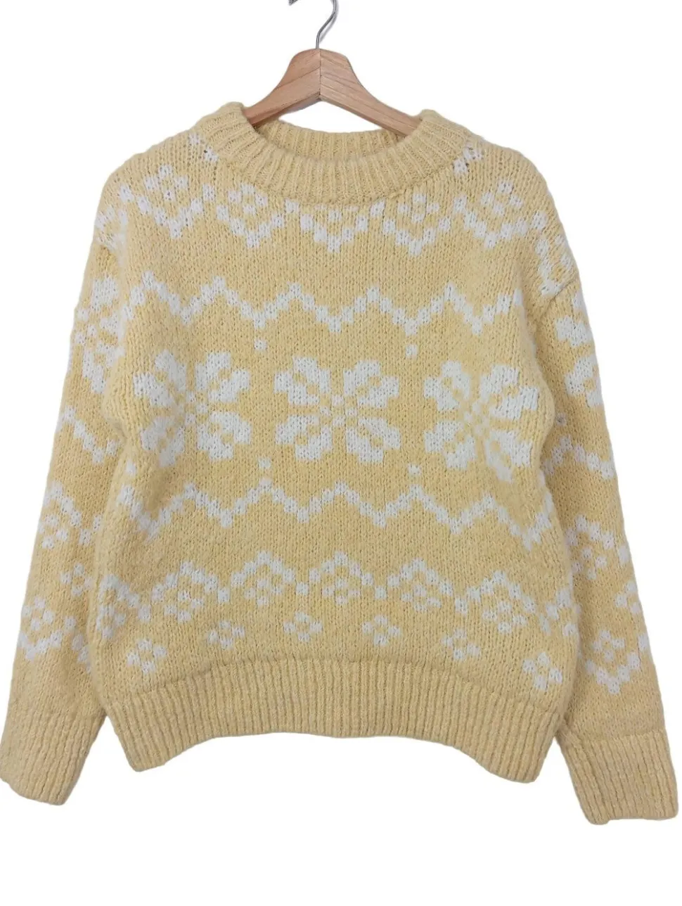 - H&M Divided Rundhalspullover, weiß-blassgelb Allover-Druck