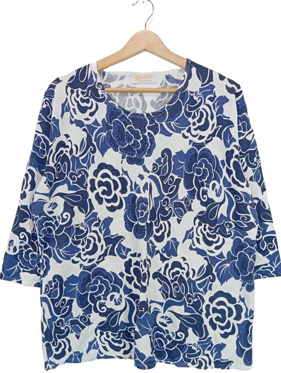 - Ovanti Schlupf-Bluse, blau-weiß abstraktes Muster