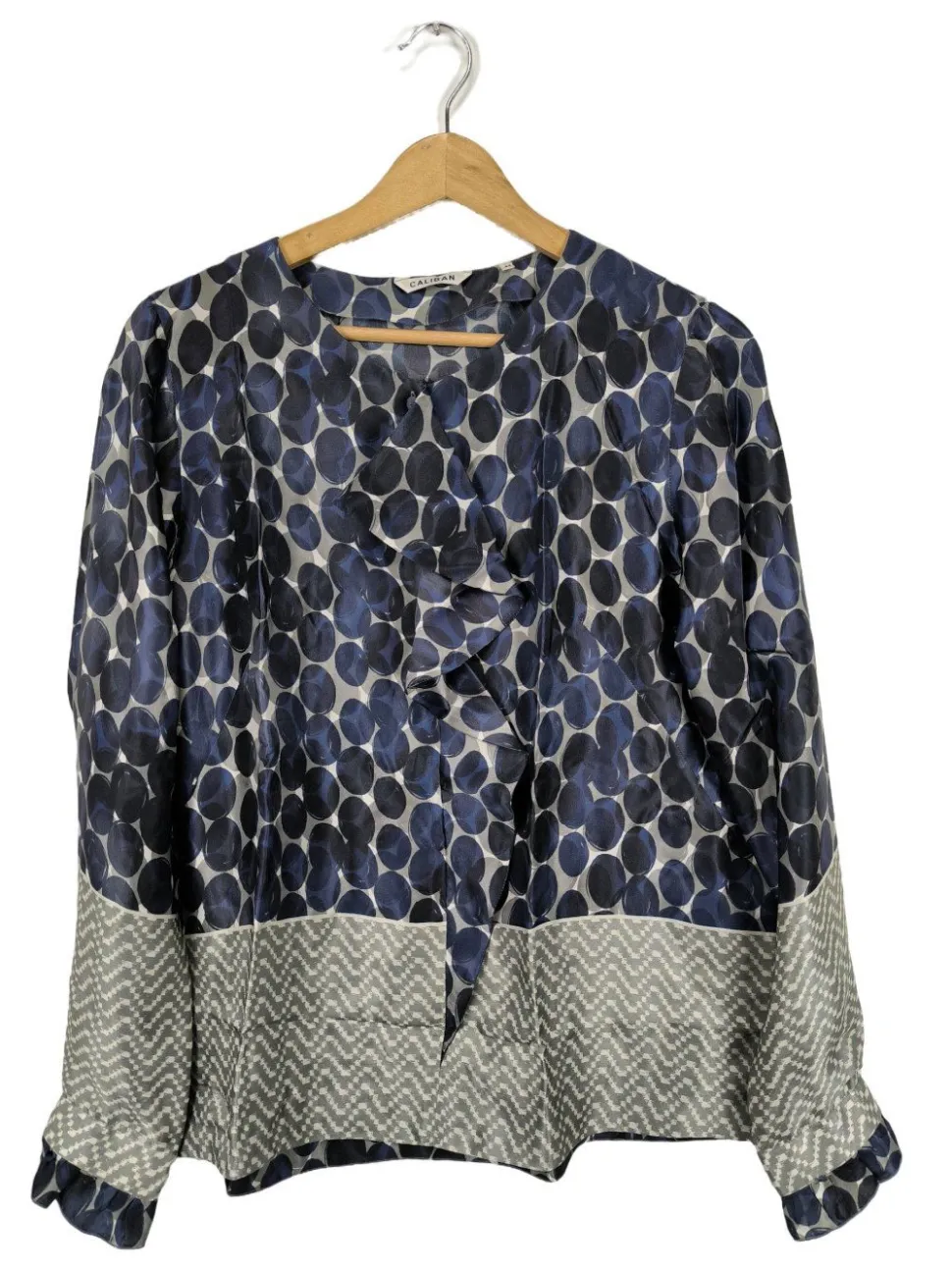 - Caliban Schlupf-Bluse, hellgrau-blau Mustermix