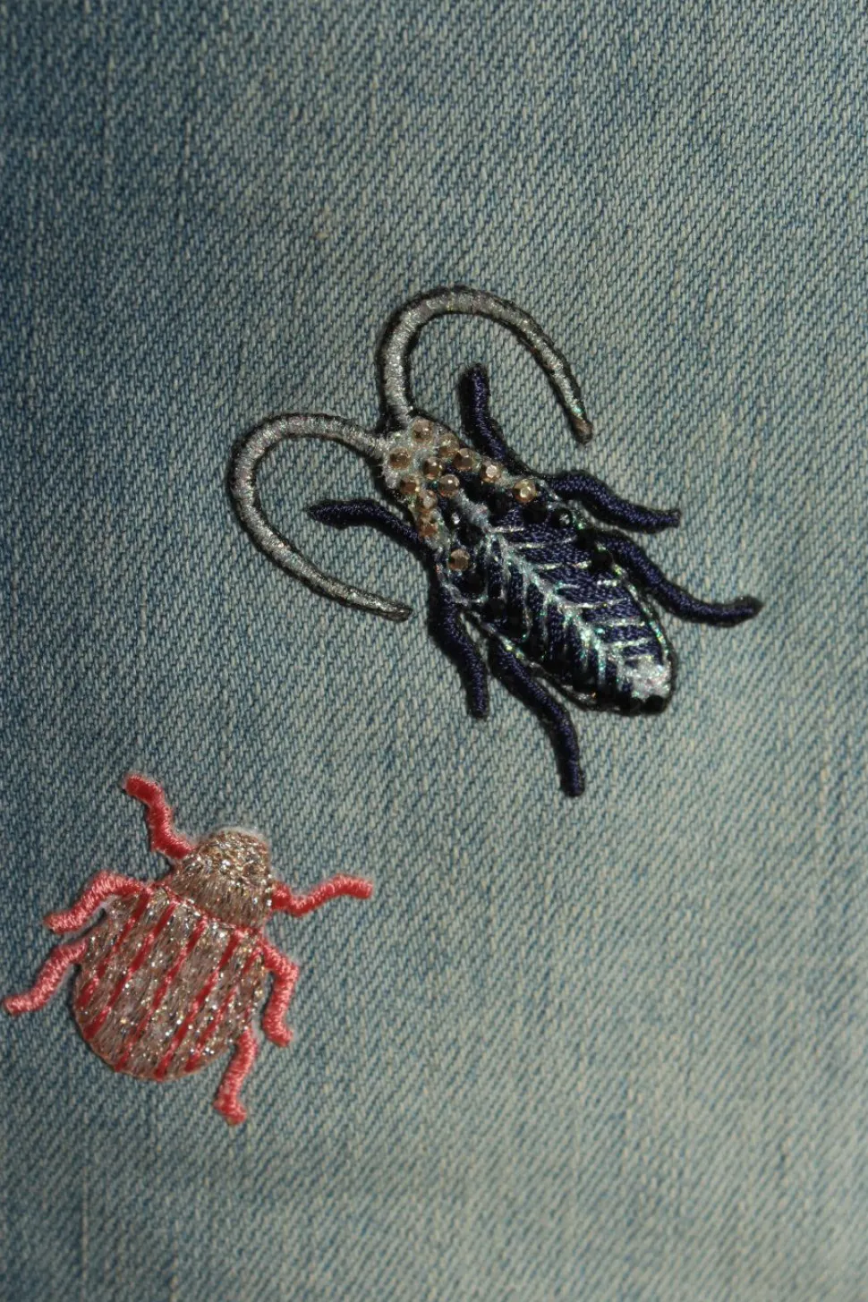 - Details: Logo-Applikation, Logo-Applikation aus Leder, Stickereiverzierung, Zierknöpfe