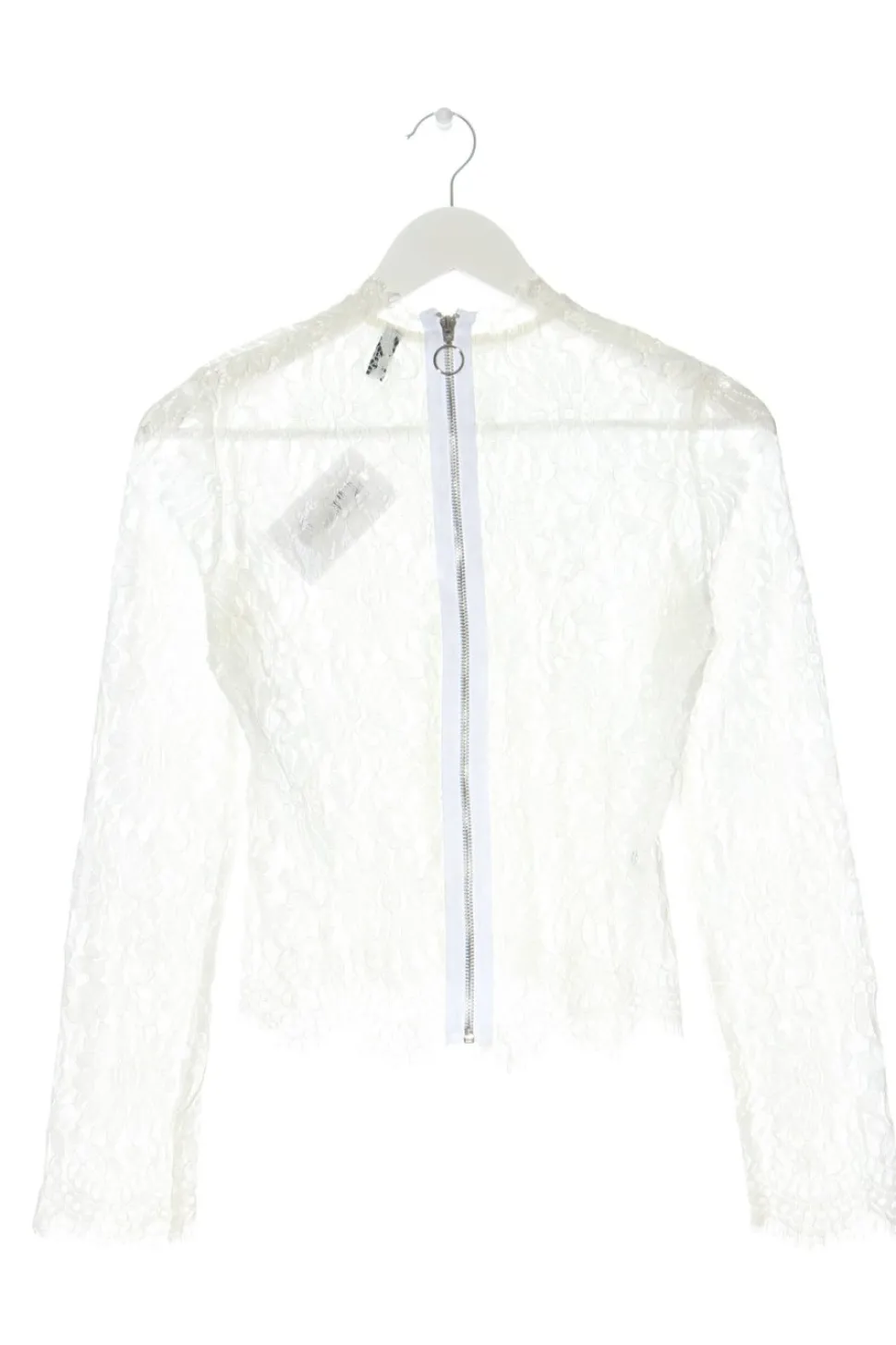 - Stehkragen, offene Kanten am Ärmelsaum, Reißverschluss hinten, Casual-Look, Elegant, Transparenz-Optik