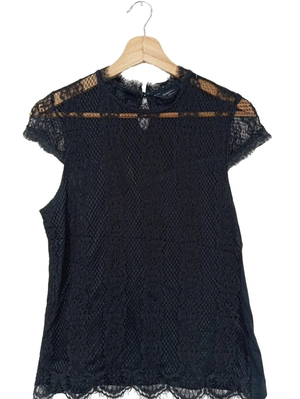 - Rundhalsausschnitt, offene Kanten am Ärmelsaum, Knopfverschluss hinten, Casual-Look, Street-Fashion-Look, Transparenz-Optik