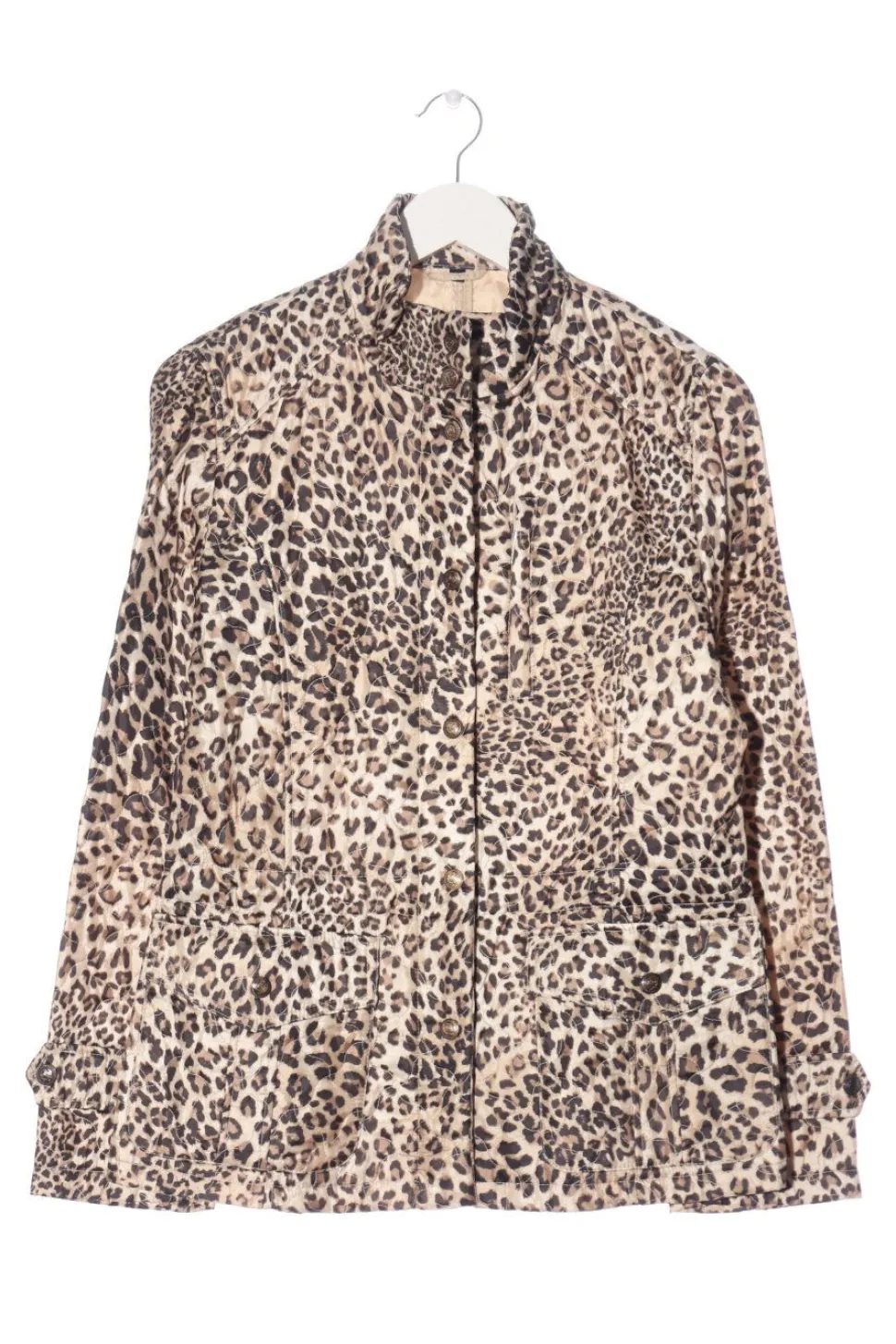 - Stehkragen, Ärmelriegel, Knopfverschluss, aufgesetzte Pattentaschen, Leomuster, Casual-Look, extravaganter Stil