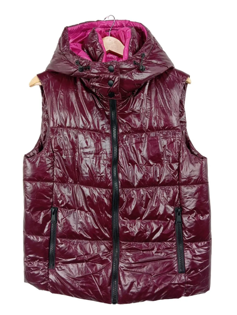 - hochgeschnittener Kragen, Reißverschluss, Reißverschlusstaschen, Seitennahttaschen, Steppmuster, Casual-Look, Glanz-Optik, Street-Fashion-Look